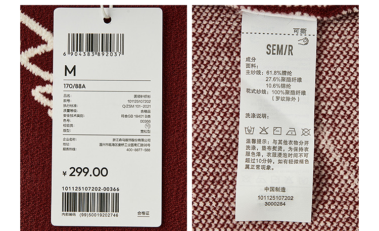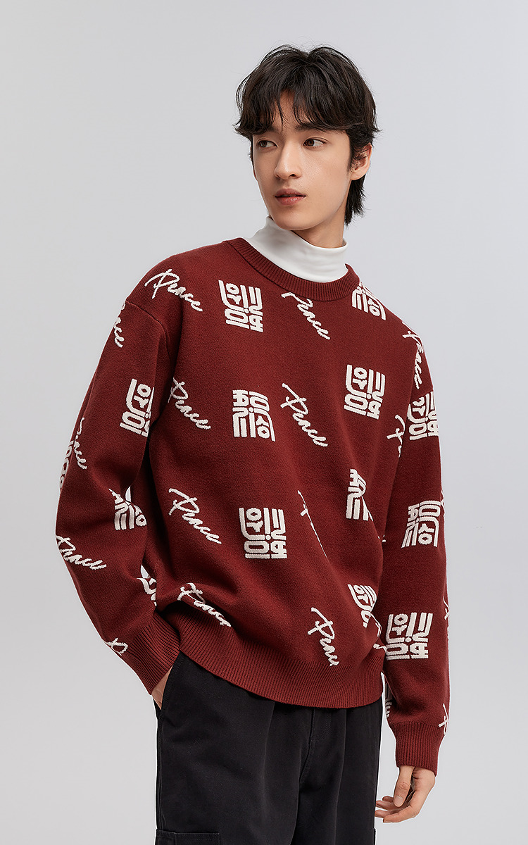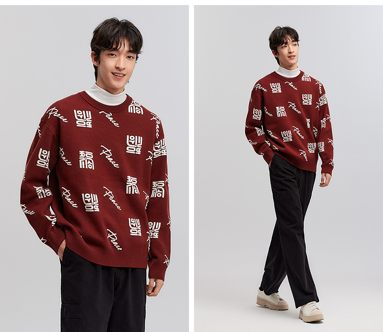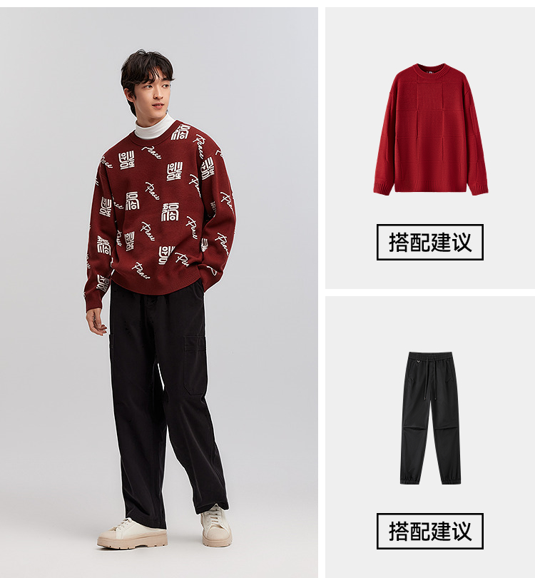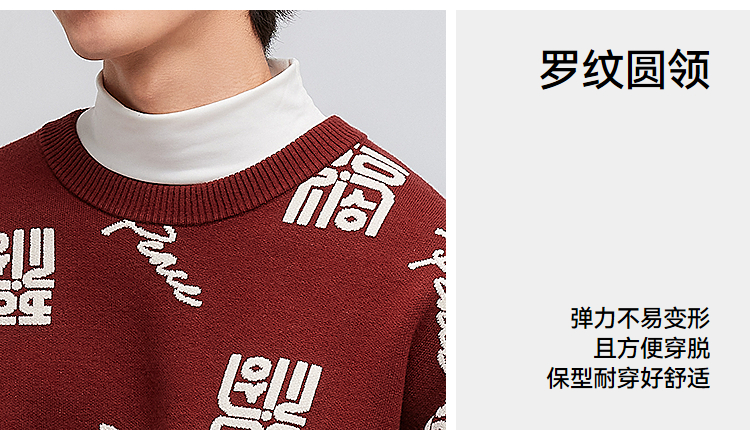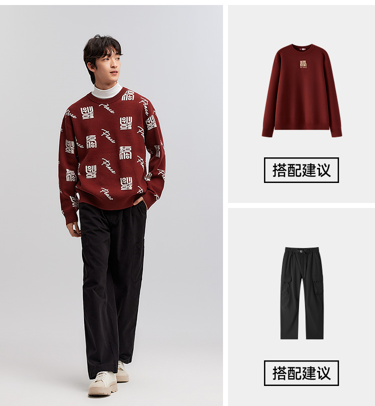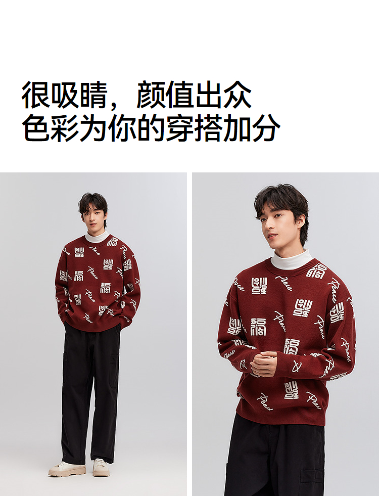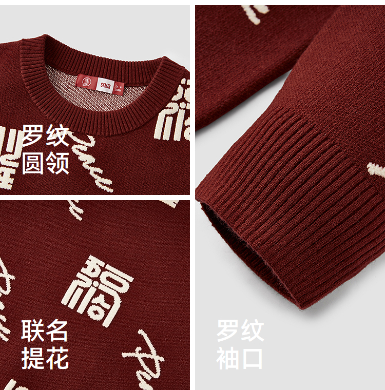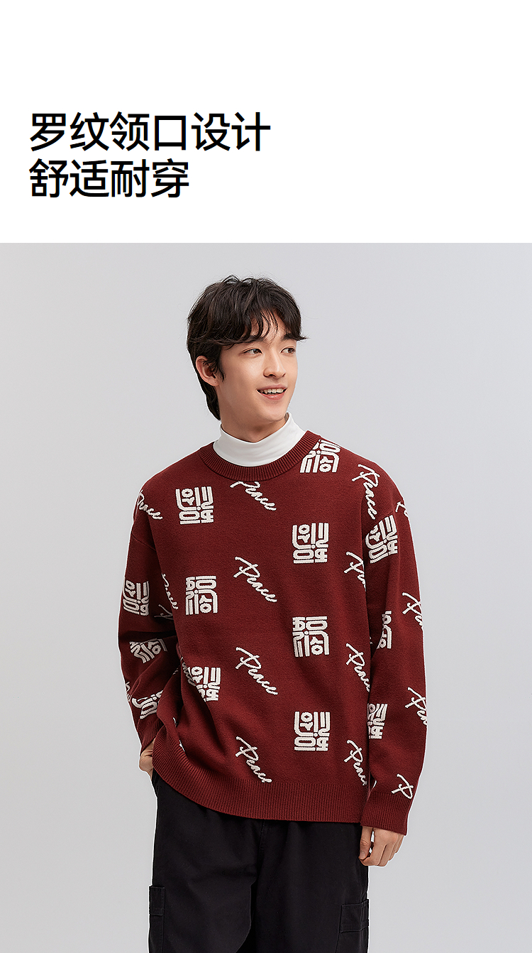 森马张仁华非遗联名毛衫男春季提花针织衫宽松套头圆领情侣款毛衣