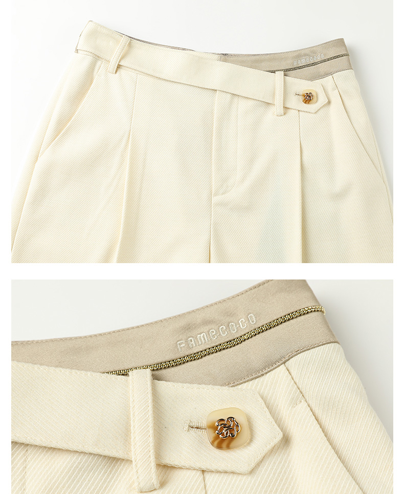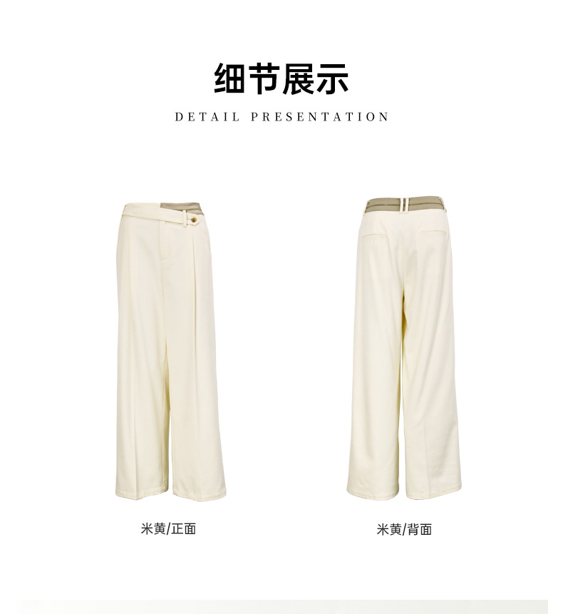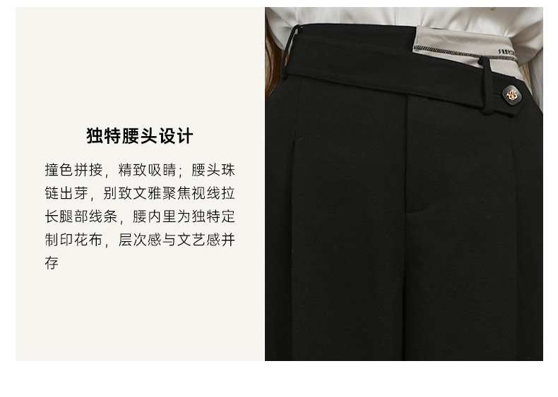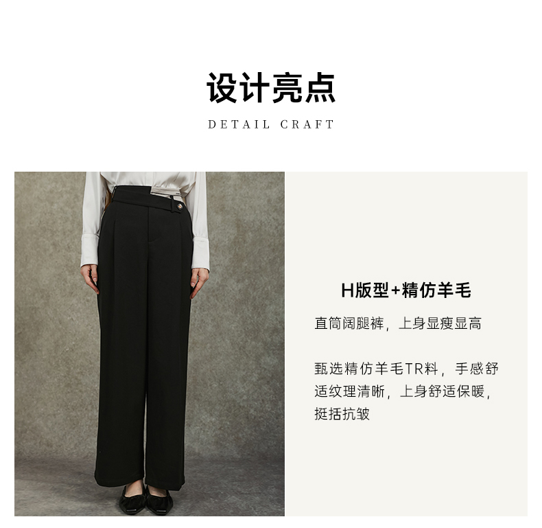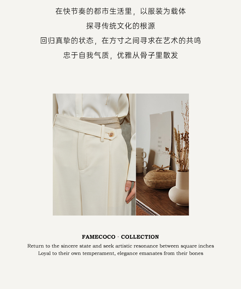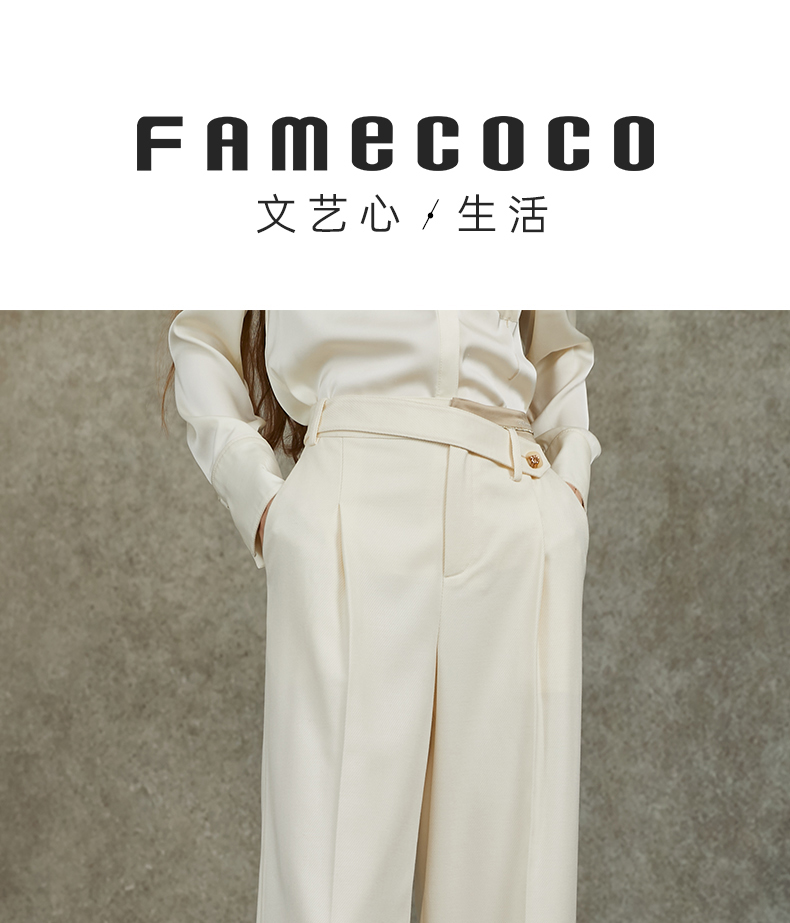 Famecoco范可儿羊毛直筒阔腿裤文艺通勤设计感腰头FAC6GA011