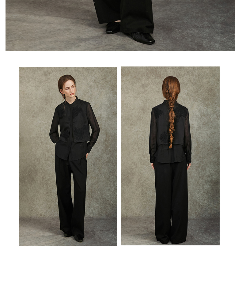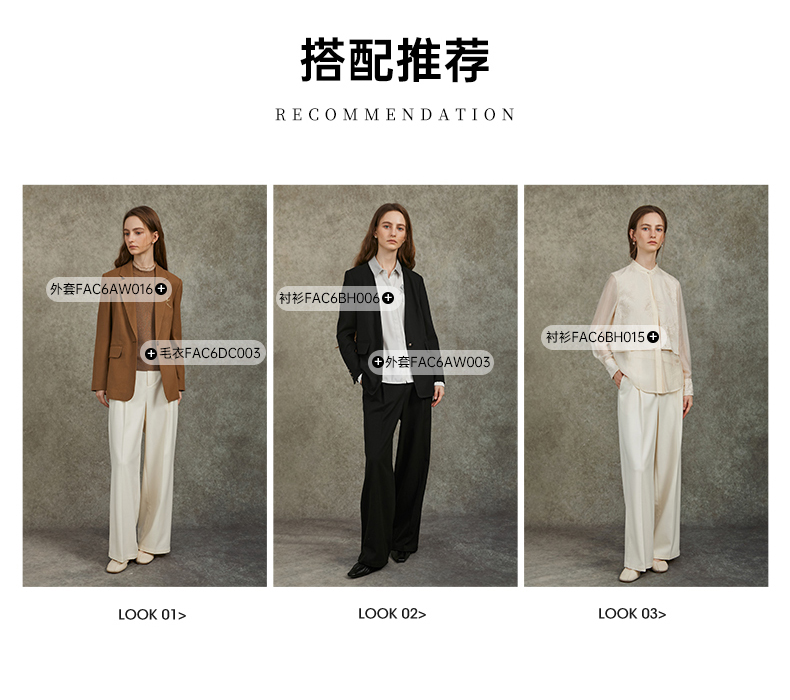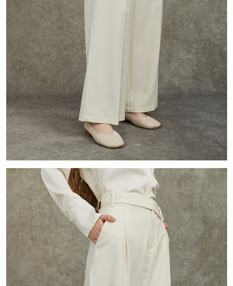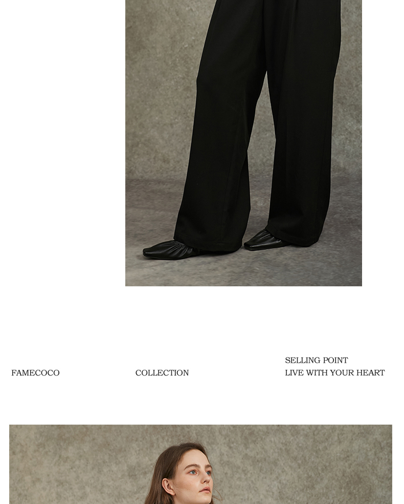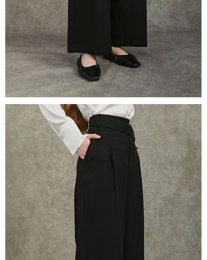 Famecoco范可儿羊毛直筒阔腿裤文艺通勤设计感腰头FAC6GA011