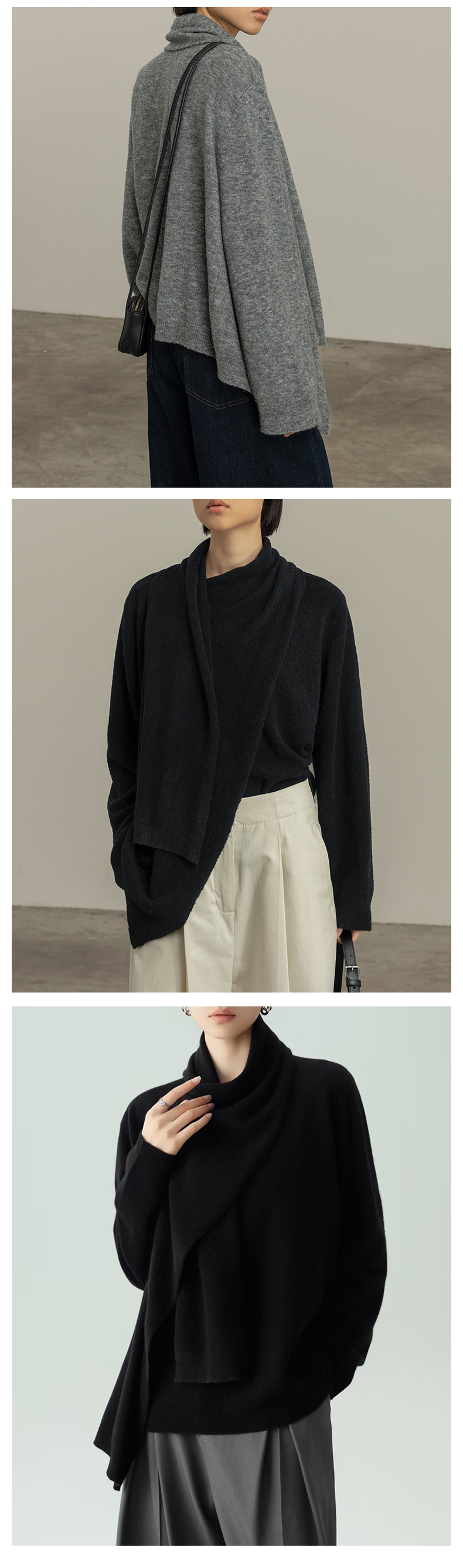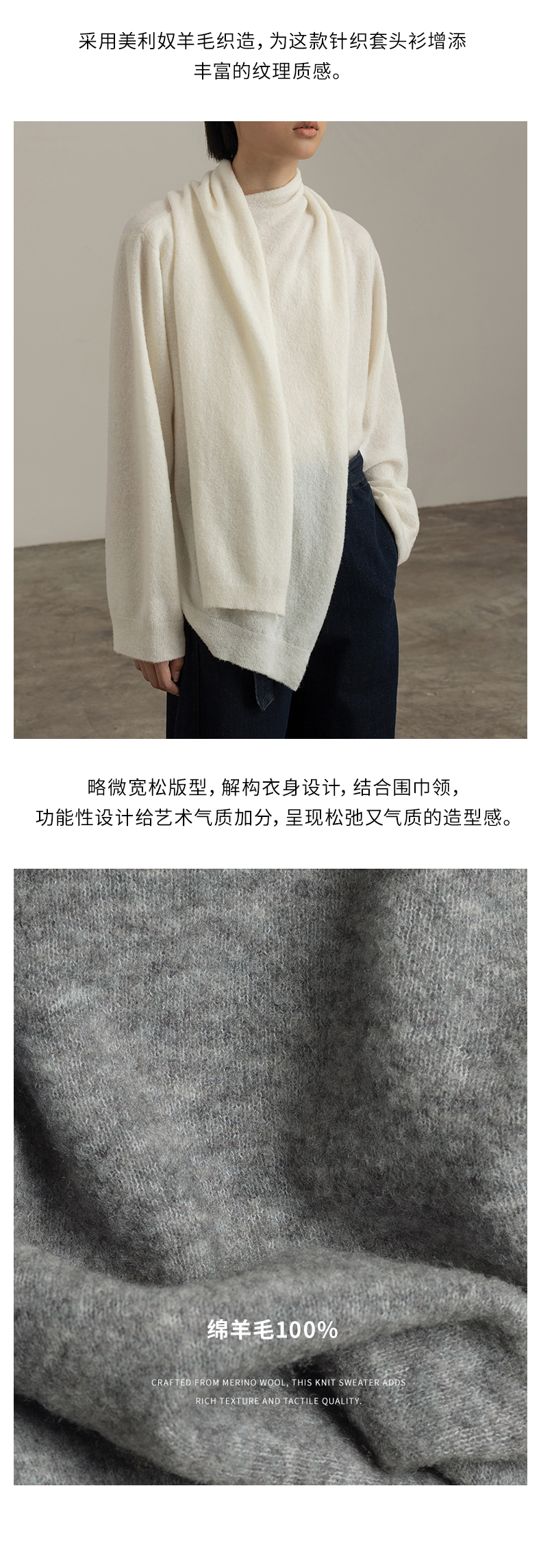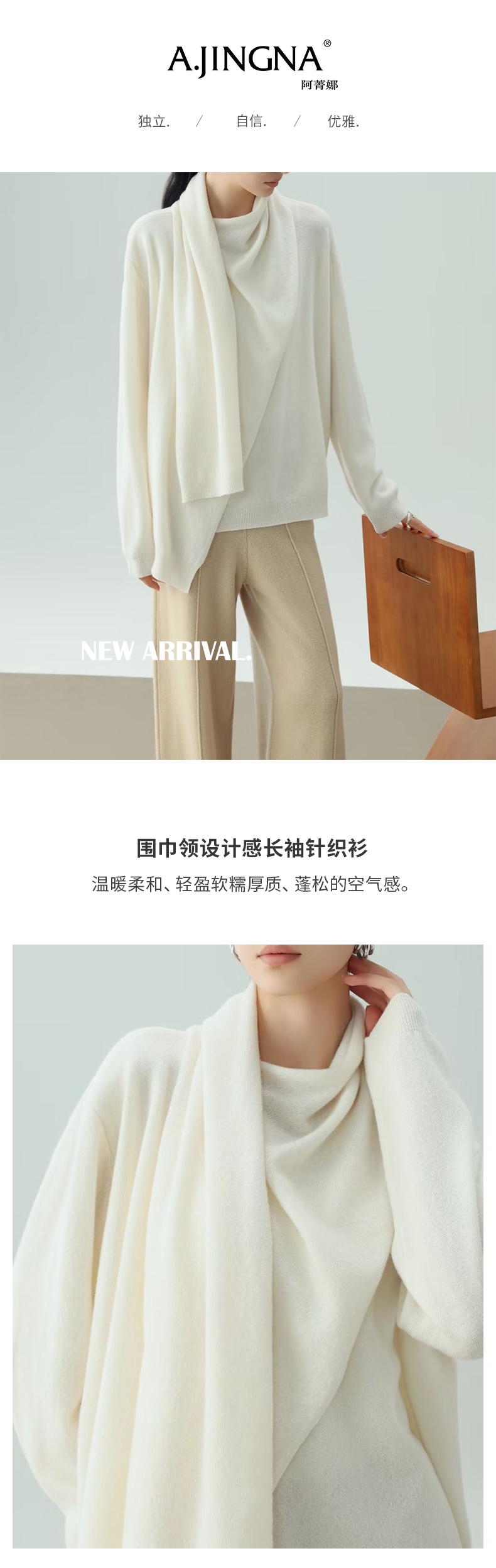 【温暖松弛】阿菁娜围巾领设计感长袖针织衫F30D302006