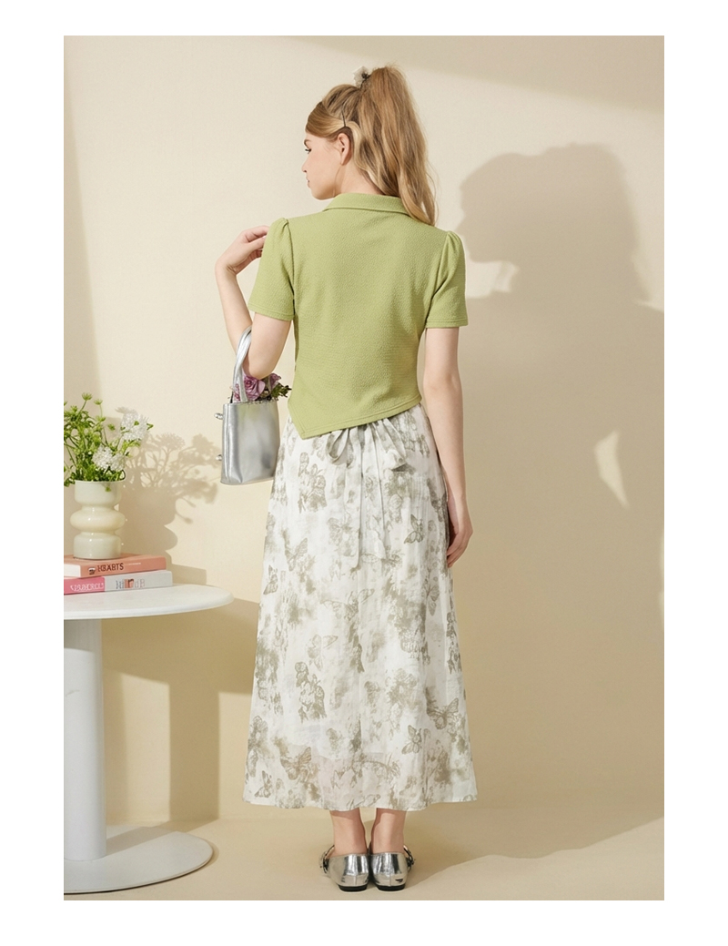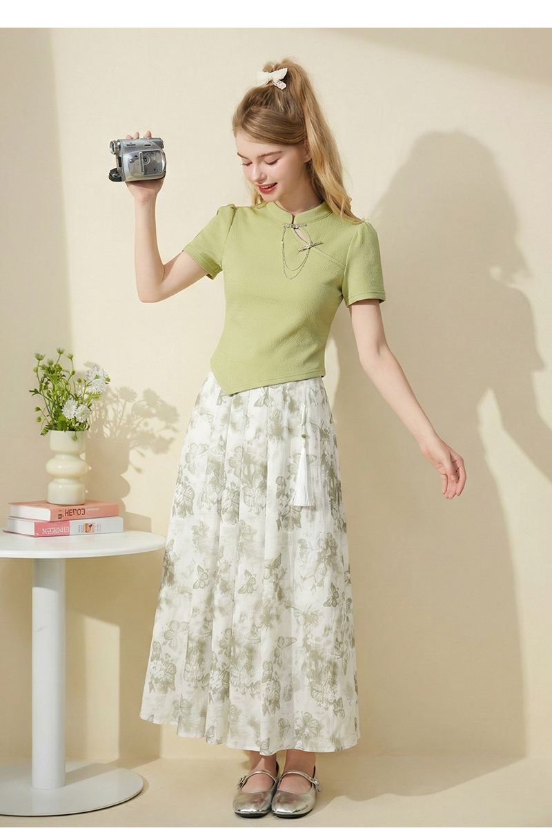 女装斜门襟雪纺印花上衣配半裙两件套-827S4221006