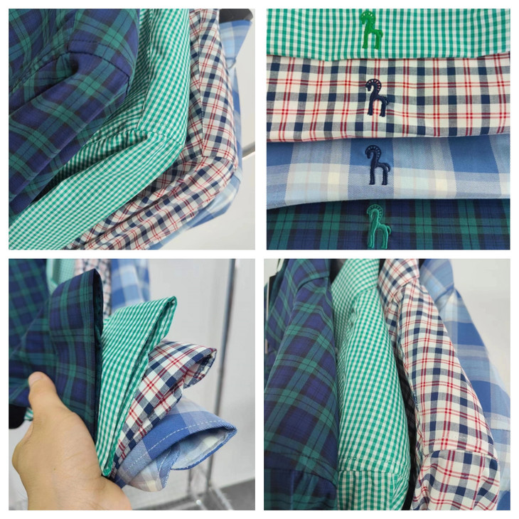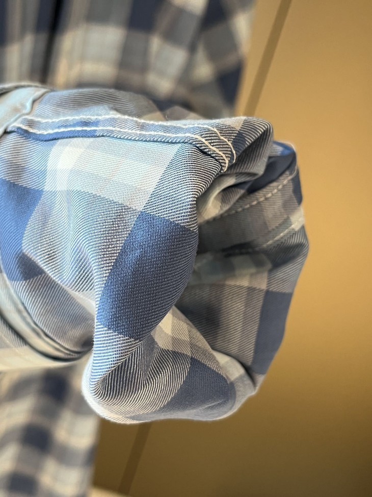 🔺定制的色织面料 采用了先染纱后织布的工艺手法 这样织出来的面料手感更柔软 不易掉色!不易变形!不易皱! 布面格纹处更细腻!平整度好!更服帖!