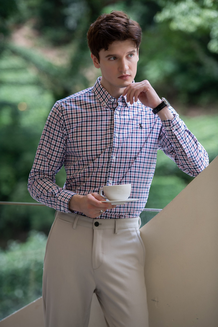 男士的衣柜不能缺少一件型男衬衫 【柏奥玛经典棉质格纹衬衫】 🔺合体偏宽松版型 在英伦经典版型上更适合亚洲男性的立体剪裁 不会松松垮垮,显高显瘦显气质 质感满满,不挑身材年龄 是男士换季衣橱的不二选择 单穿、叠穿都能展现出儒雅绅士的男性魅力 呈现出朝气与十足的活力