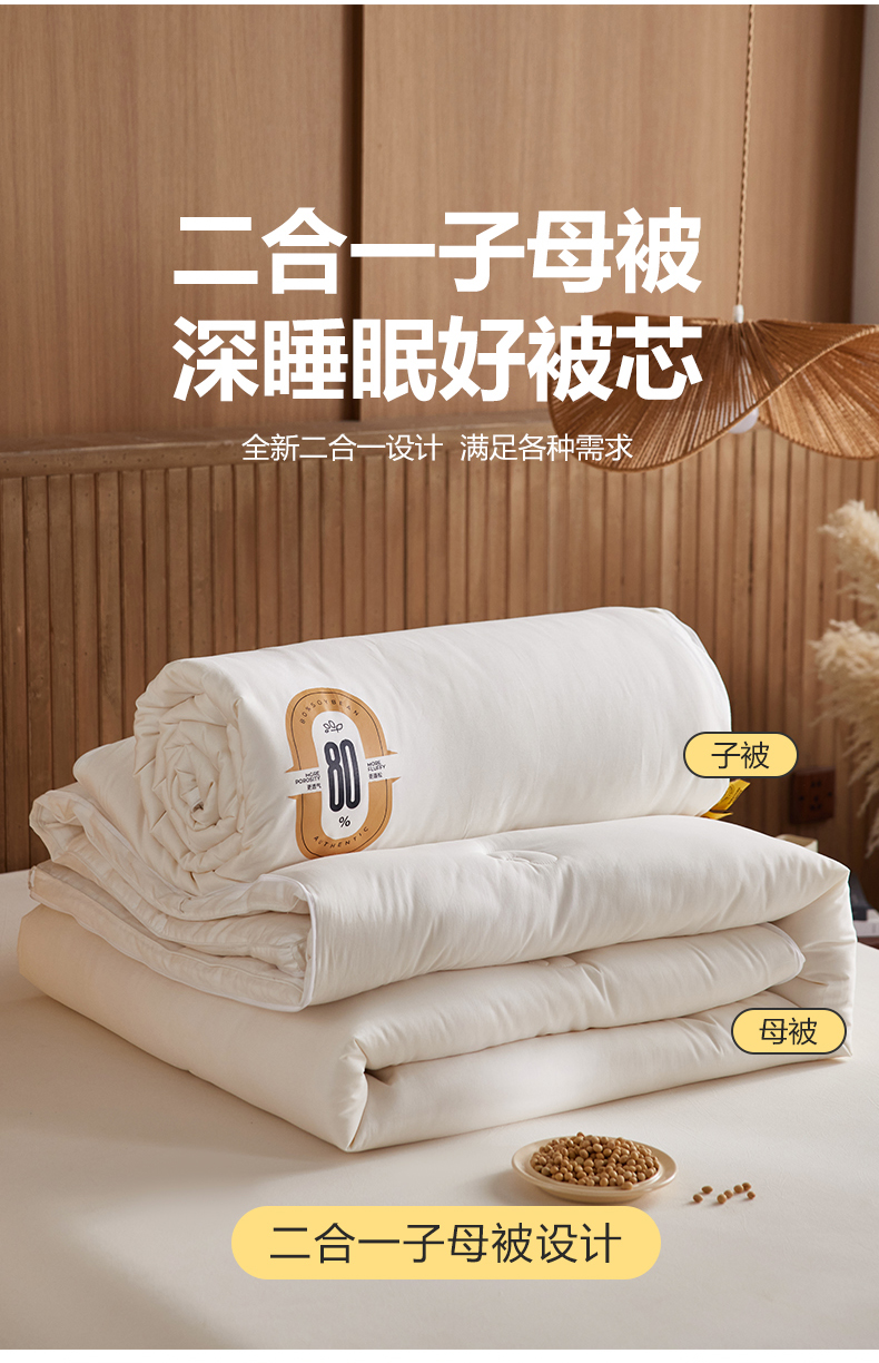 【至尊版李官奇80%含量大豆被】100S长绒棉全棉80%大豆蛋白被 二合一全棉大豆子母被