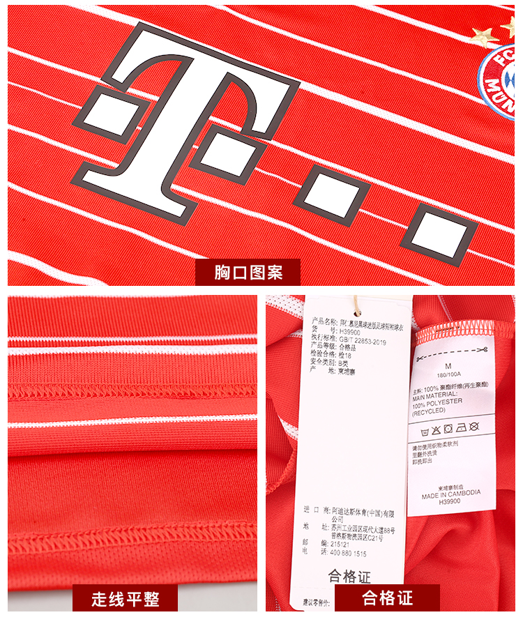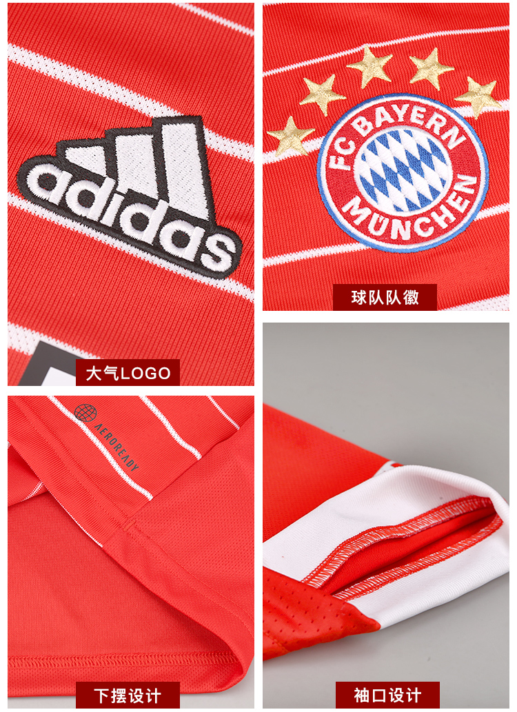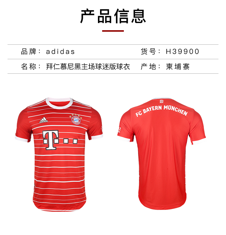 ADIDAS/阿迪达斯 FCB H JSY 拜仁慕尼黑球迷版足球短袖球衣H39900