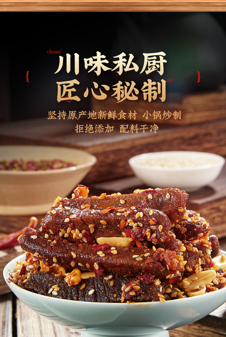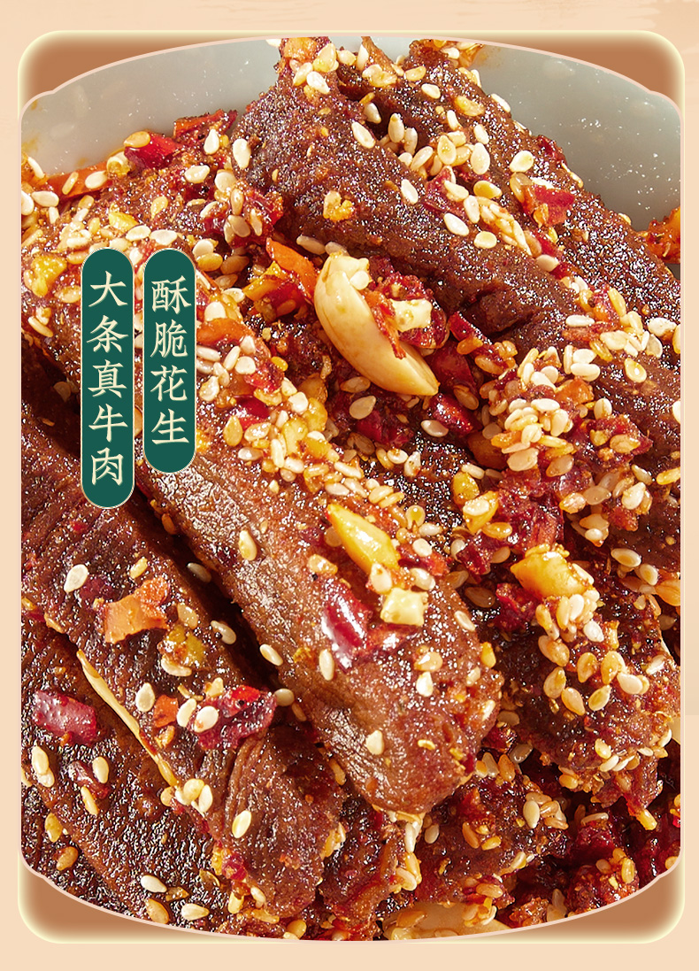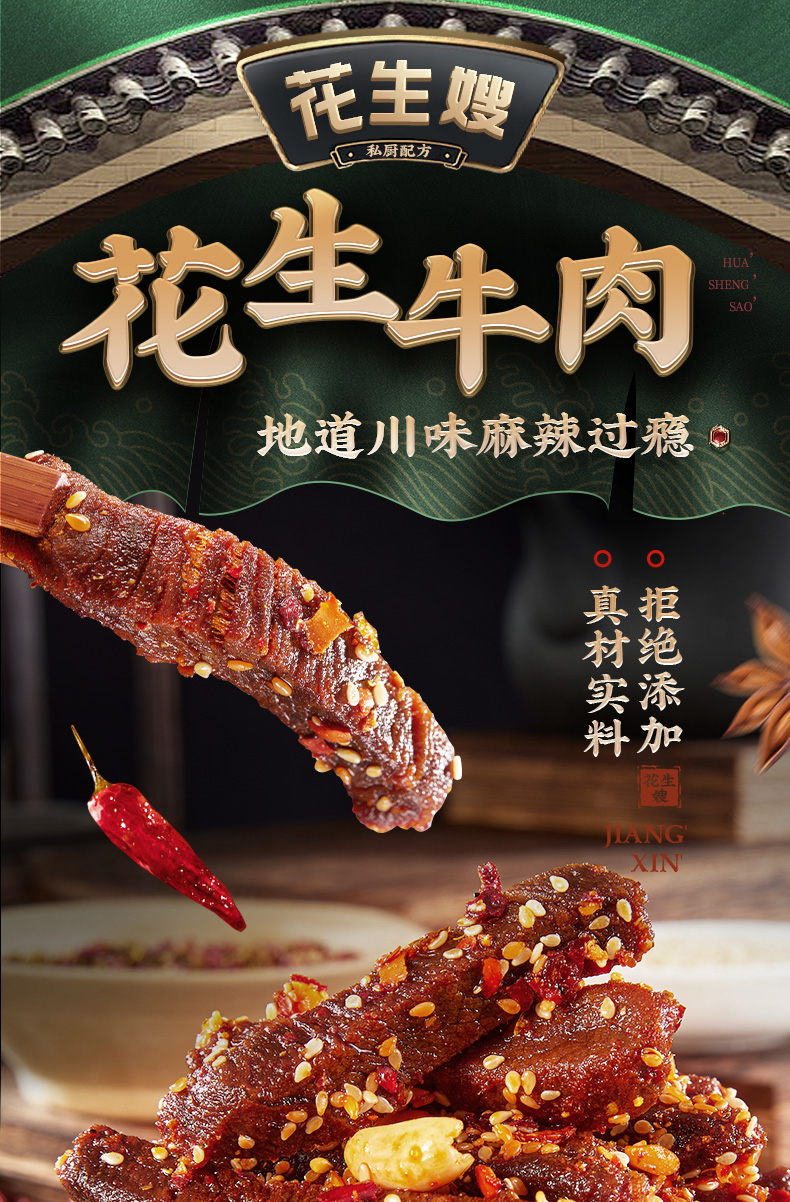 焕新升级-火爆全网的四川特色地域美食,花生嫂私厨冷吃牛肉,正式升级为牛肉条。