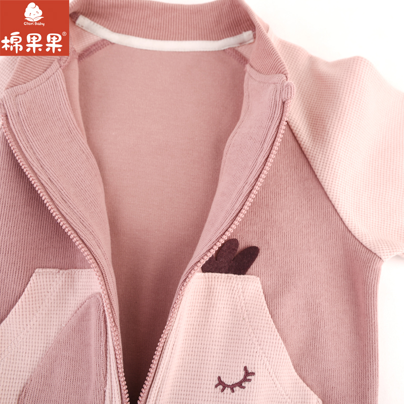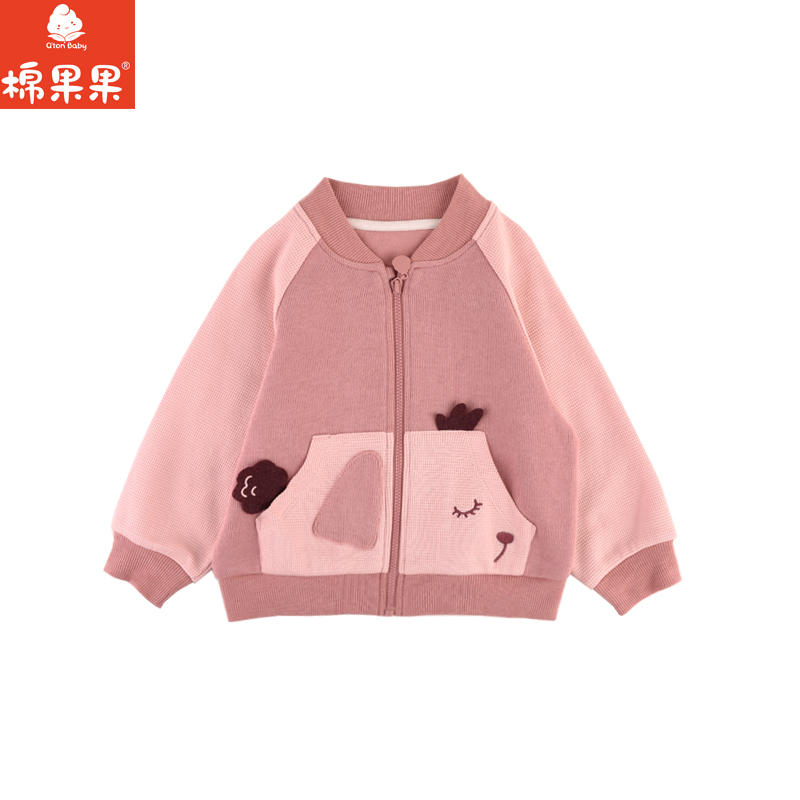 棉果果专柜同款春季新品女童华夫格质感卡通长袖外套M122100224012