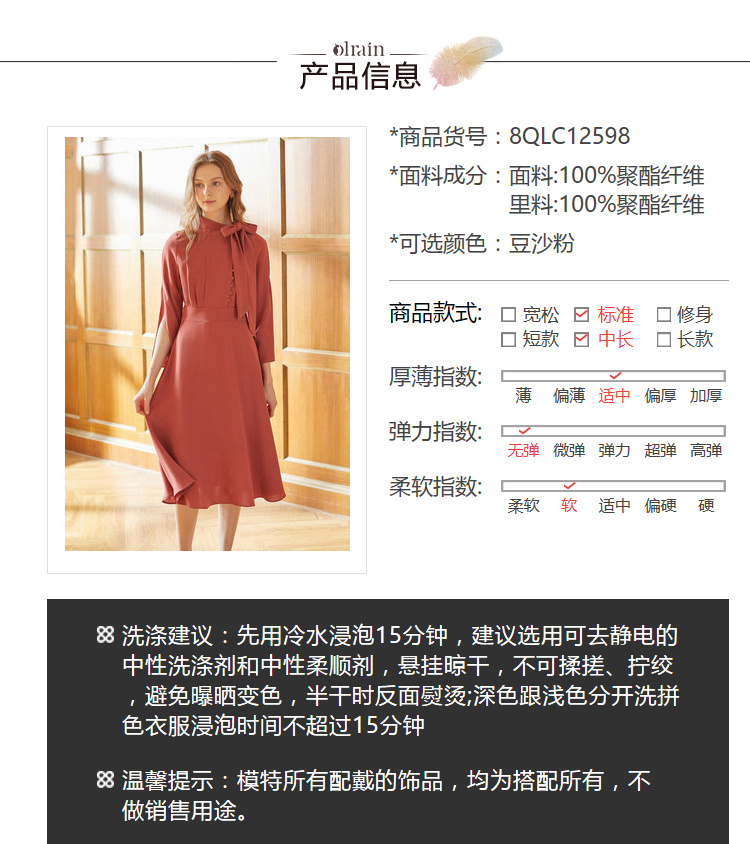 “精致”是欧芮儿olrain品牌文化的核心,欧芮儿认为,精致的女人,不但要外在动人,更要内在迷人,内外兼修,有魅力、有气质、有内涵,自信而不自傲,优雅而不矫揉,自有万种风情而不轻浮,更不故作矜持。