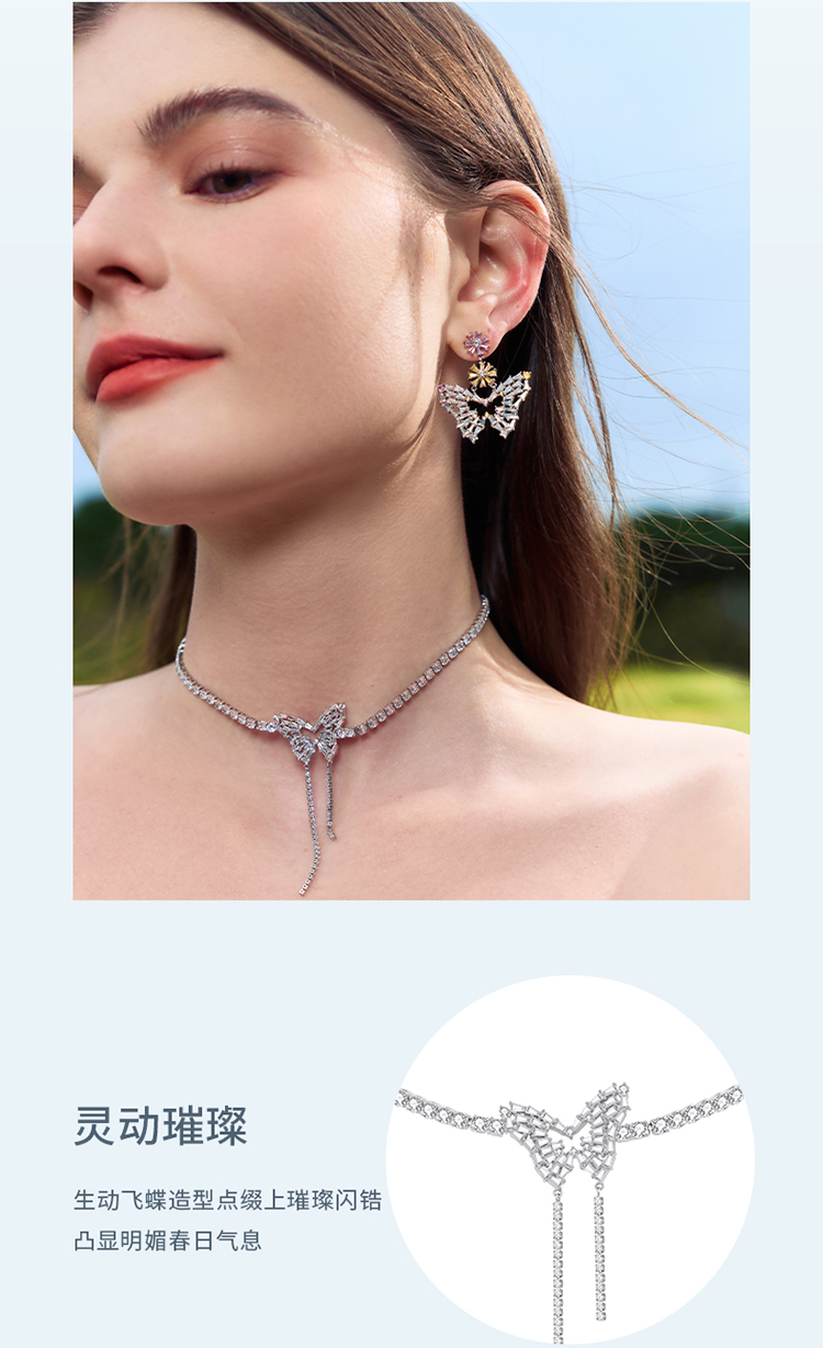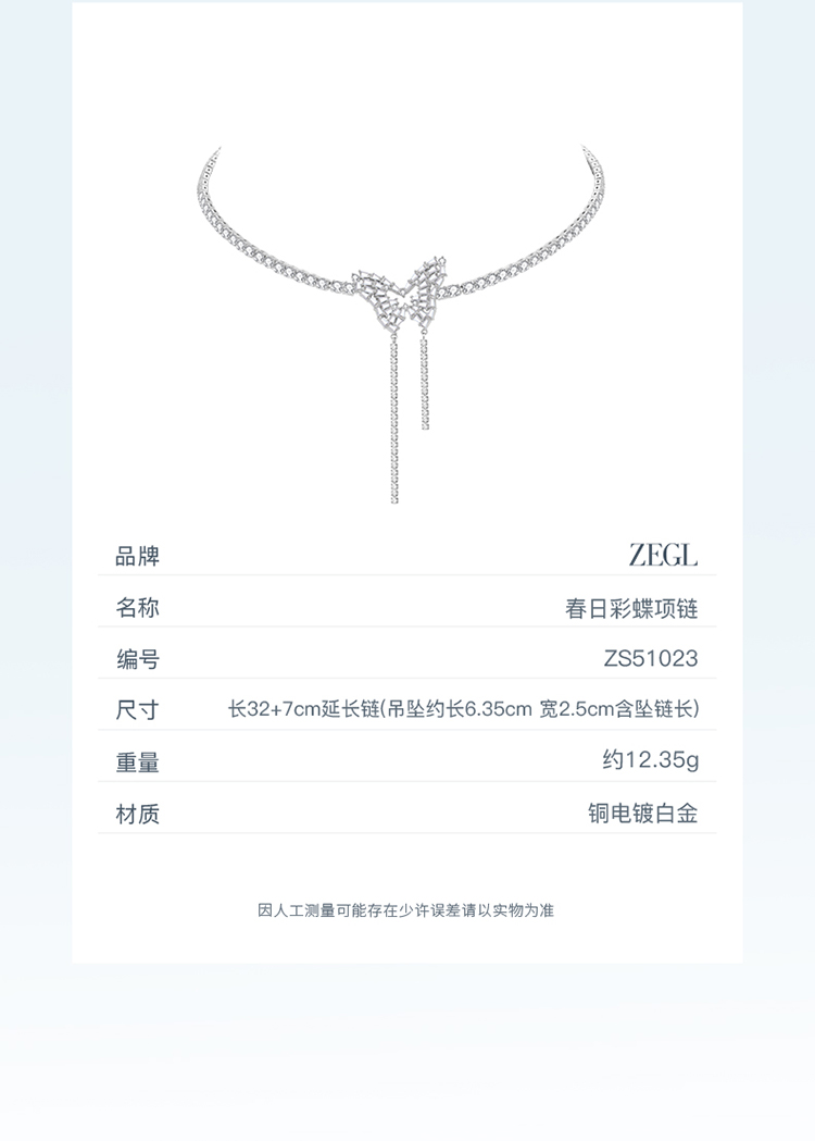 ZEGL设计师印象花园系列蝴蝶项链女款颈链时尚高级感锁骨链配饰品