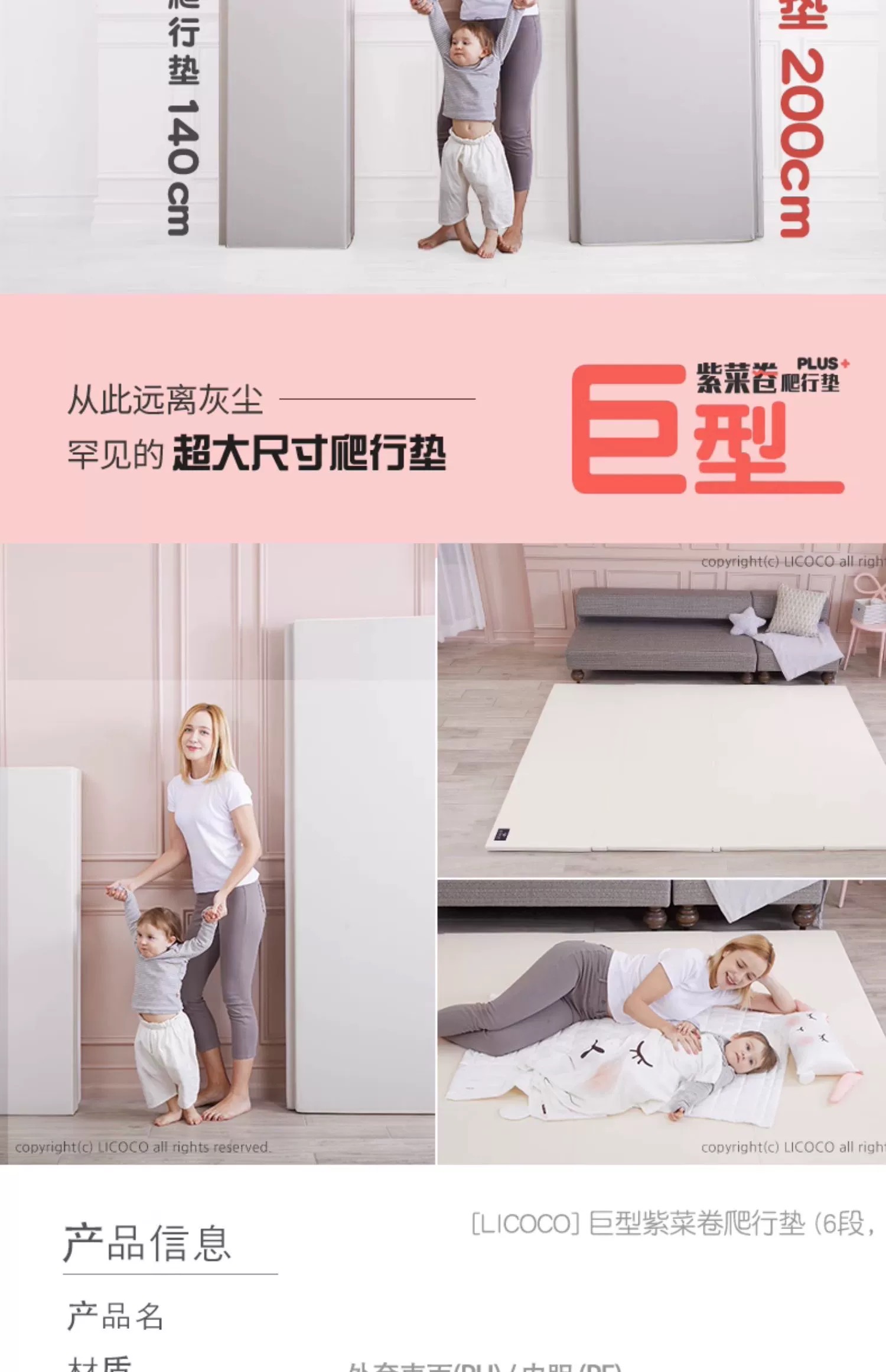 【品牌直供】韩国licoco紫菜卷巨型爬行垫