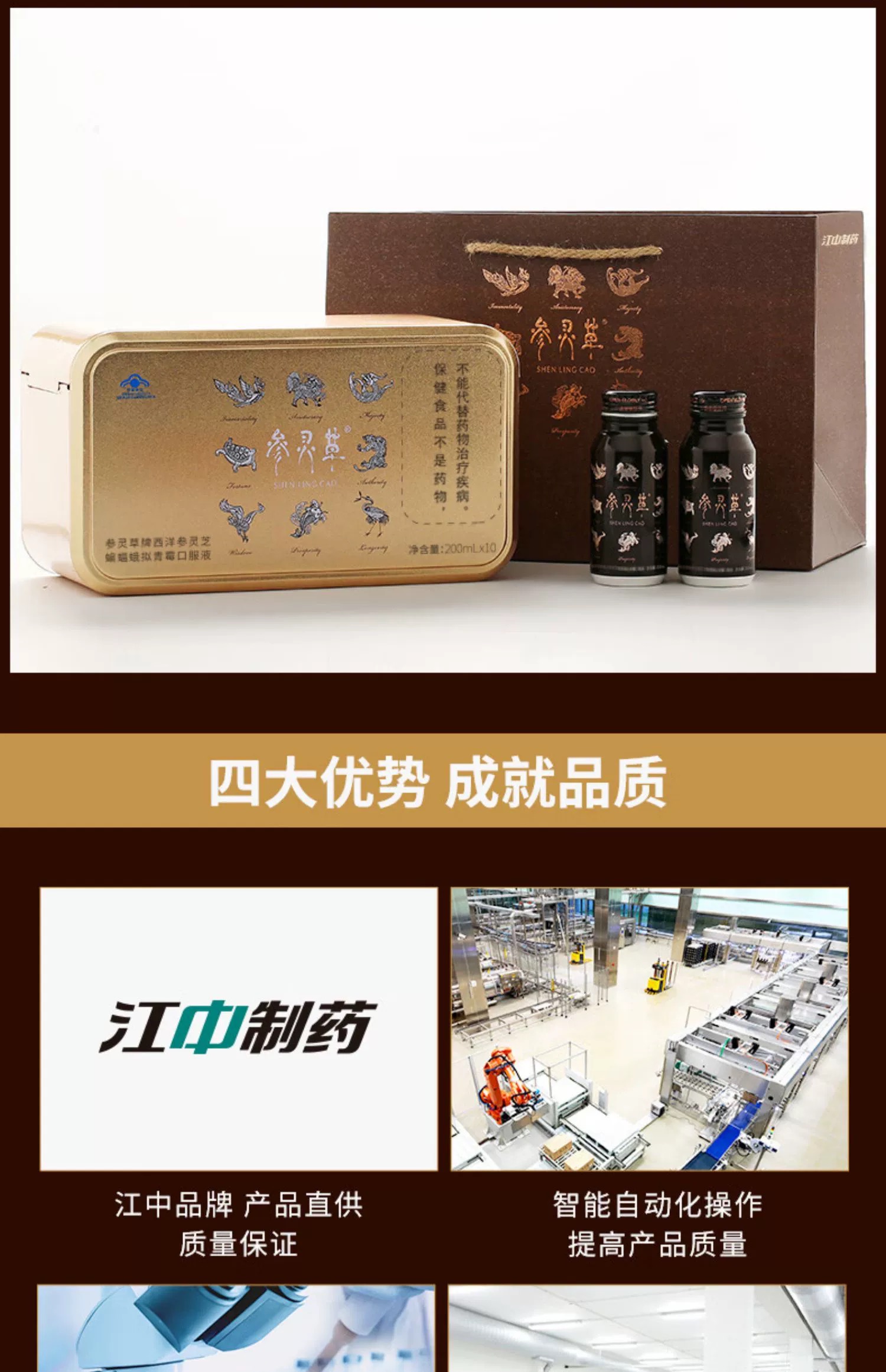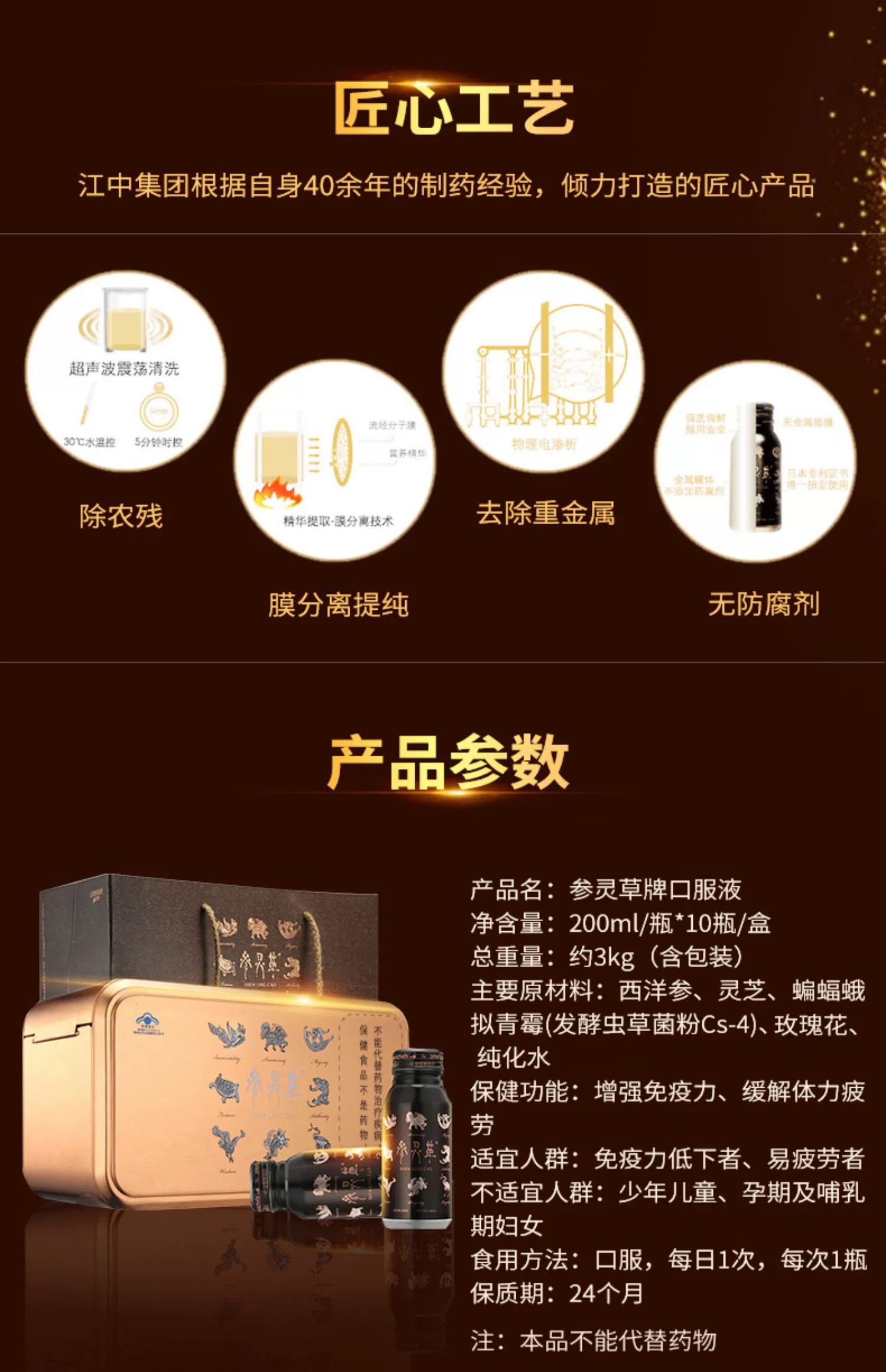 【新品上市】江中参灵草西洋参灵芝蝙蝠蛾拟青霉口服液10瓶装冬虫夏草礼盒装