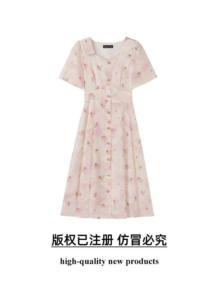 奢姿大码女装2026夏季减龄碎花方领连衣裙胖妹妹甜美风时尚裙子9962860143
