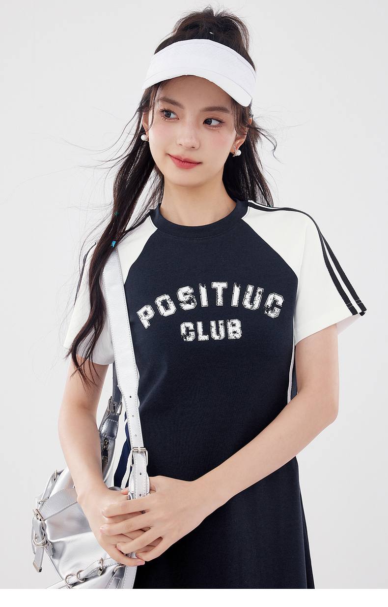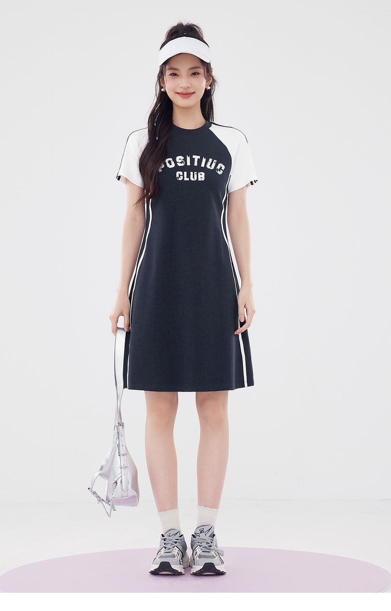 【严选】诗凡黎美式学院撞色插肩袖字母T恤裙2024夏新款运动风休闲连衣裙7F5390011