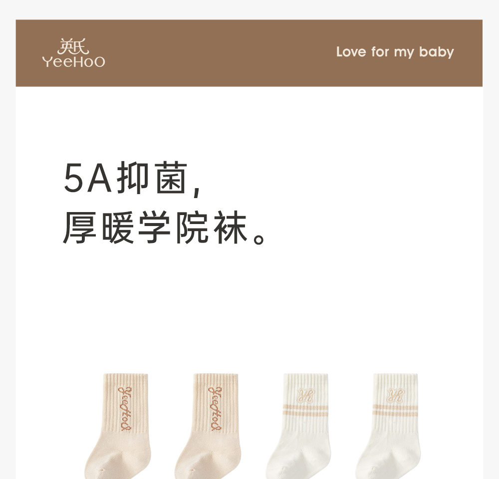 英氏儿童袜子5A抑菌秋冬加厚保暖赛柔丝无感袜2双装YIWBJ4P231A