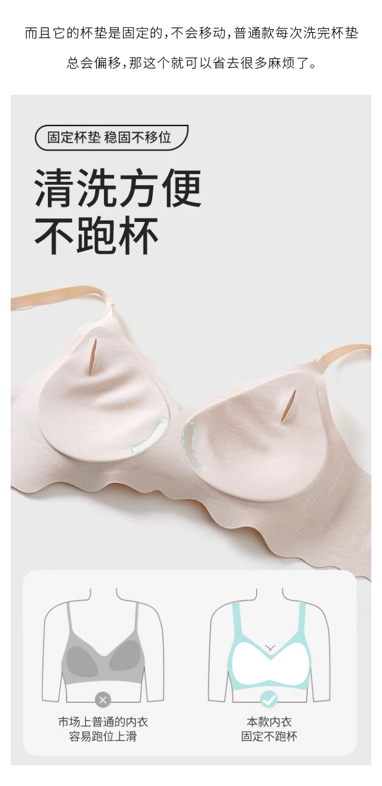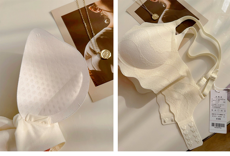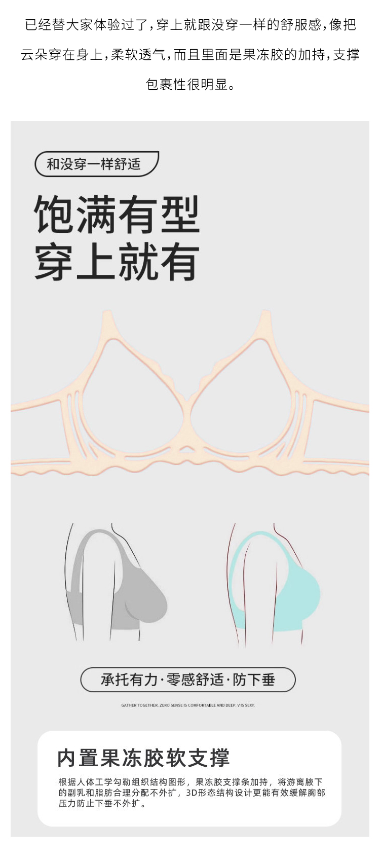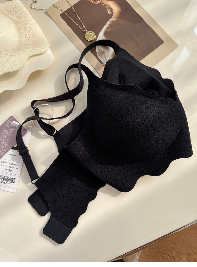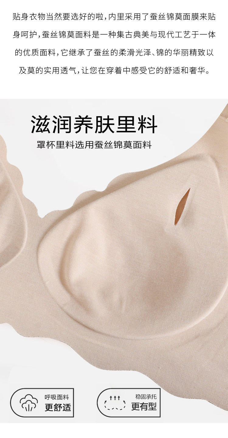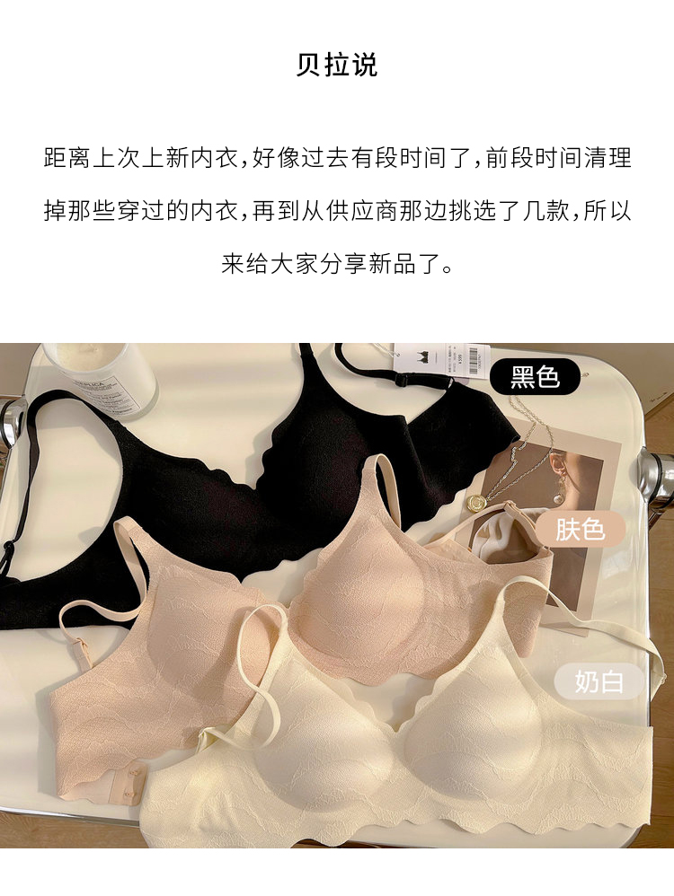 云朵般柔软 果冻胶无钢圈支撑 花面法式波浪边文胸 蕾丝杯面 轻薄透气 蚕丝内里