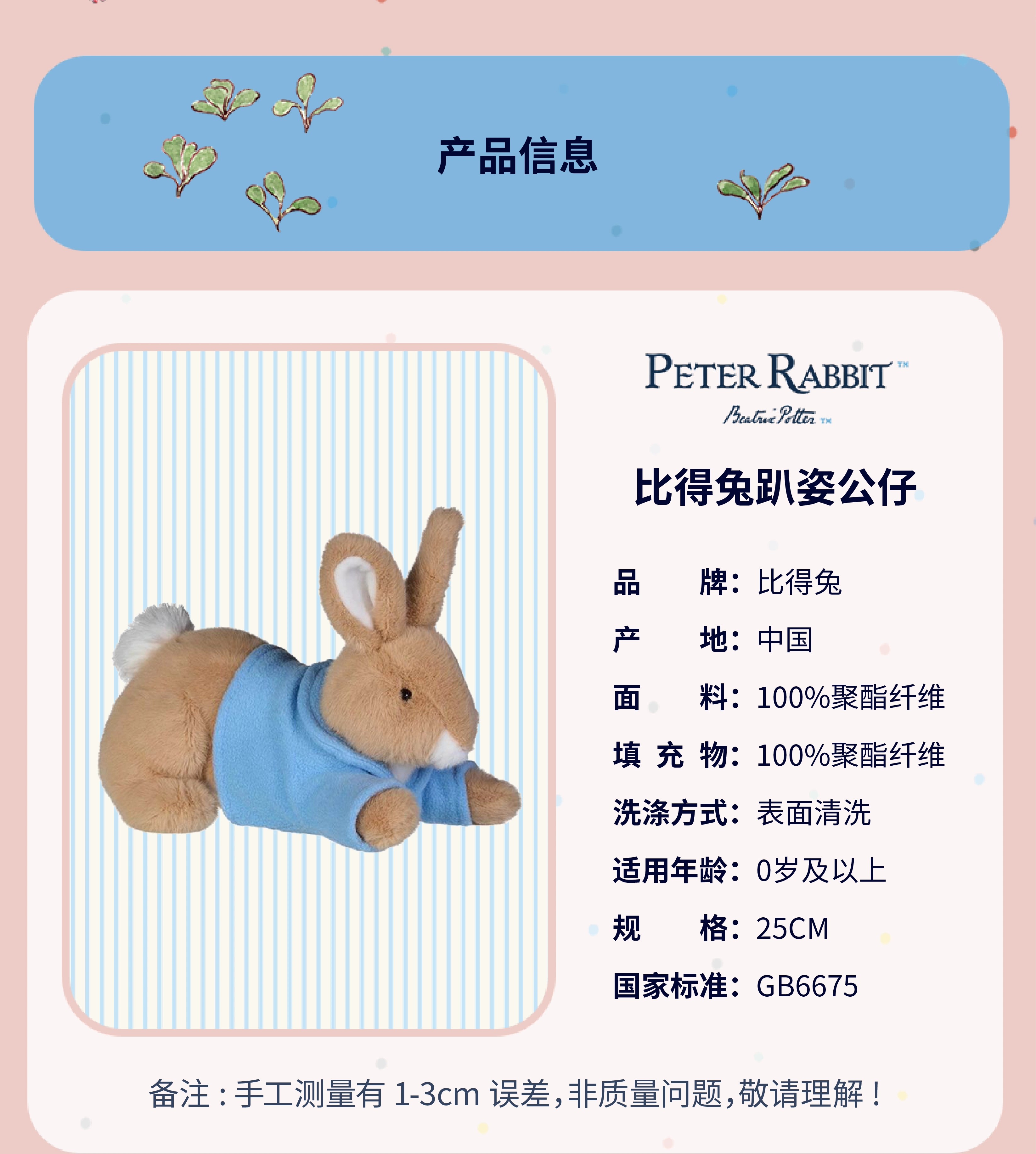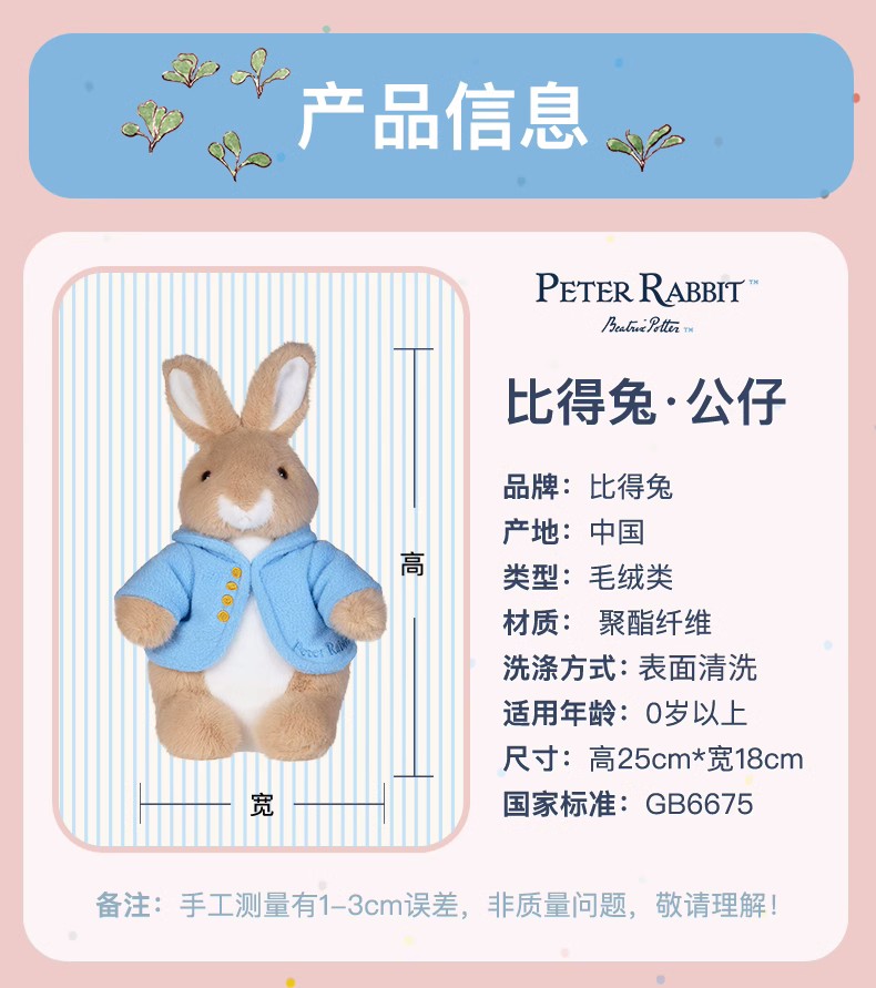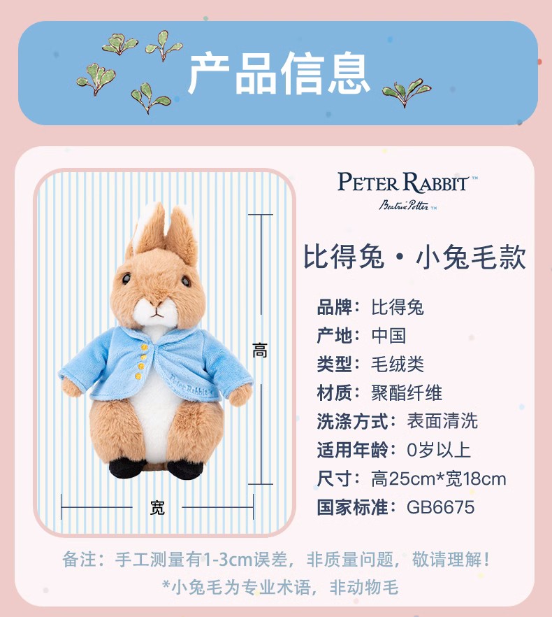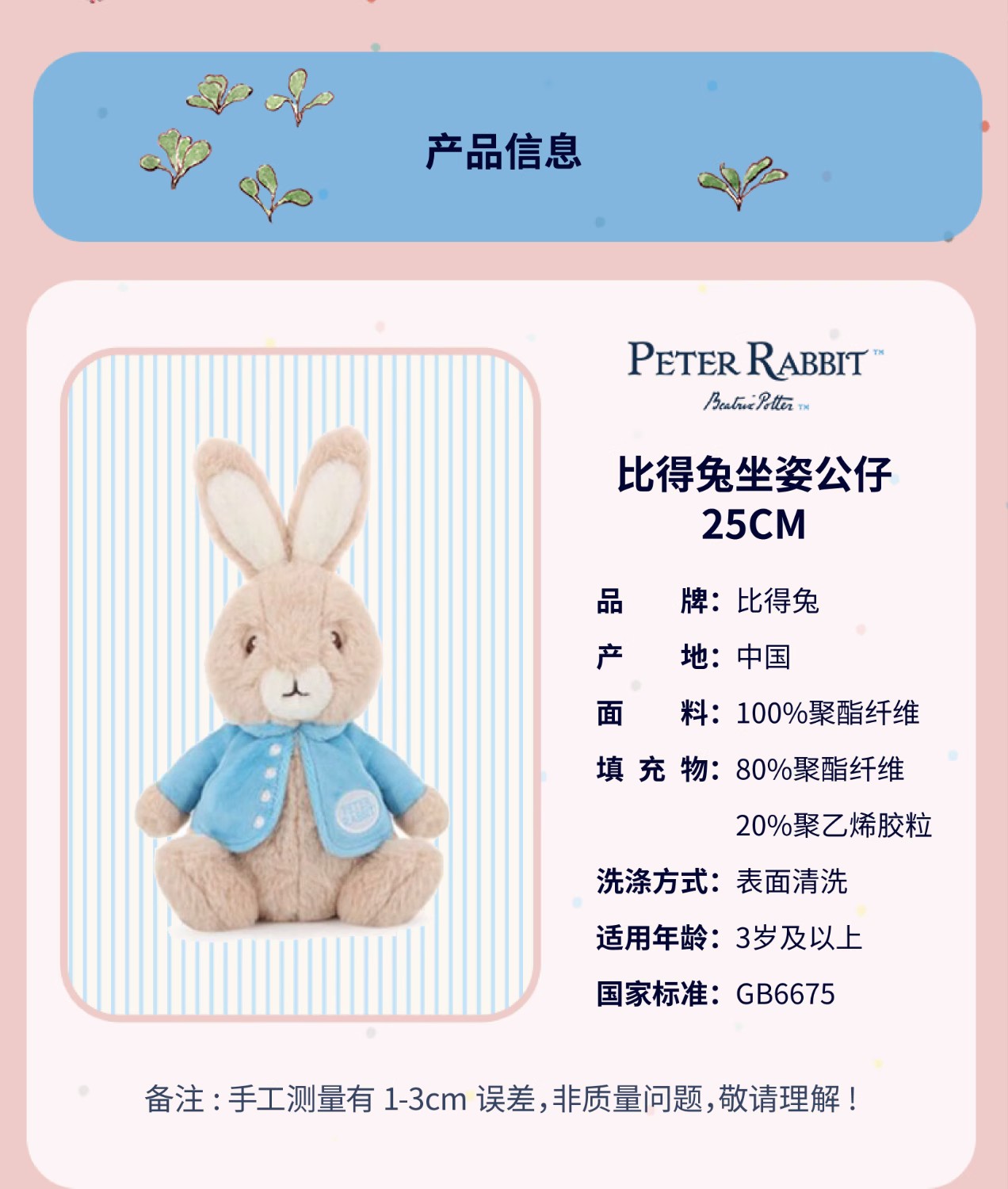 英国 比得兔小兔毛公仔 PeterRabbit 毛绒安抚玩具可爱卡通玩偶礼物25cm(手感更佳)