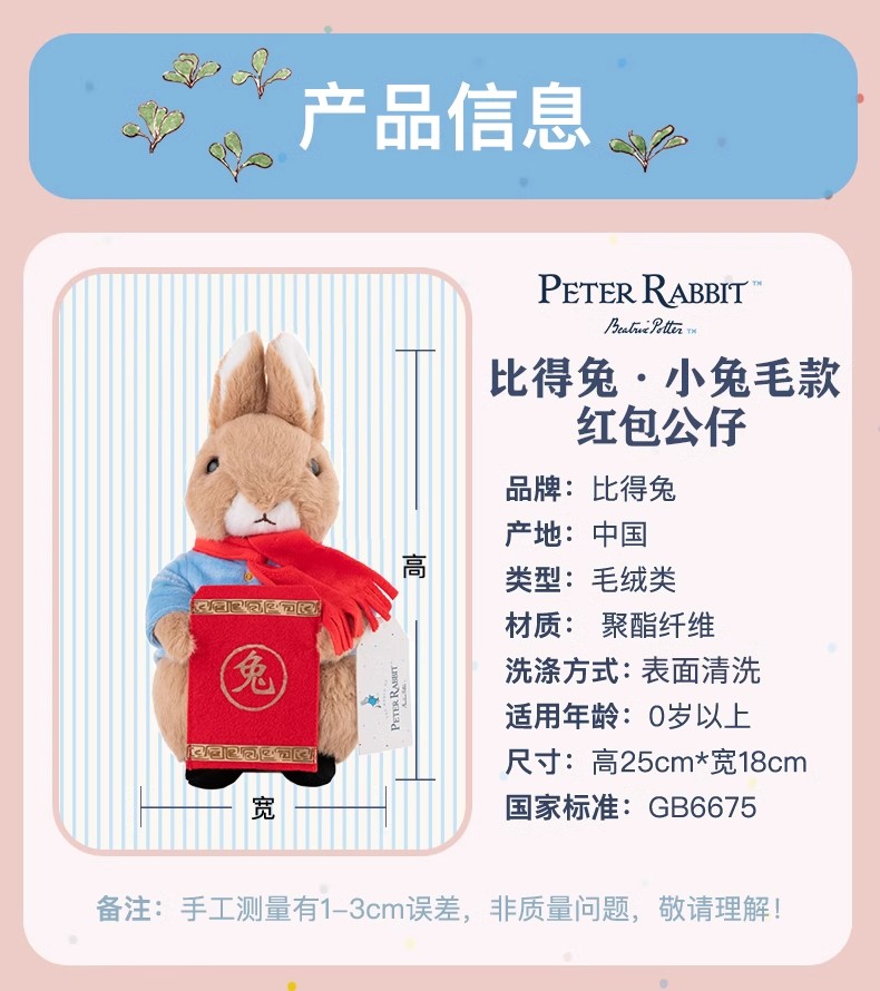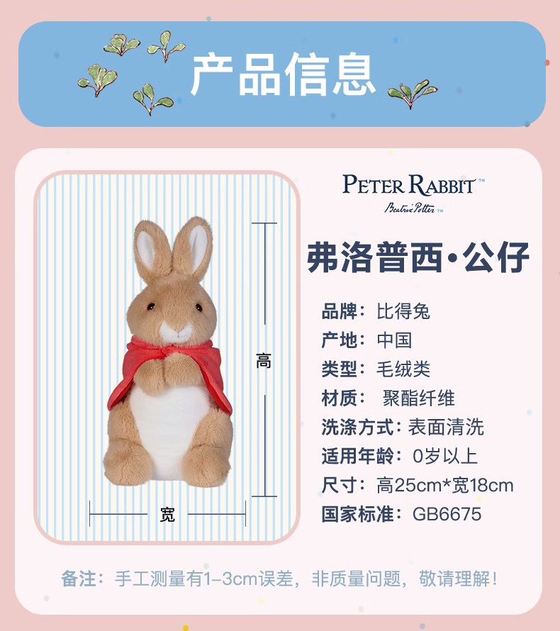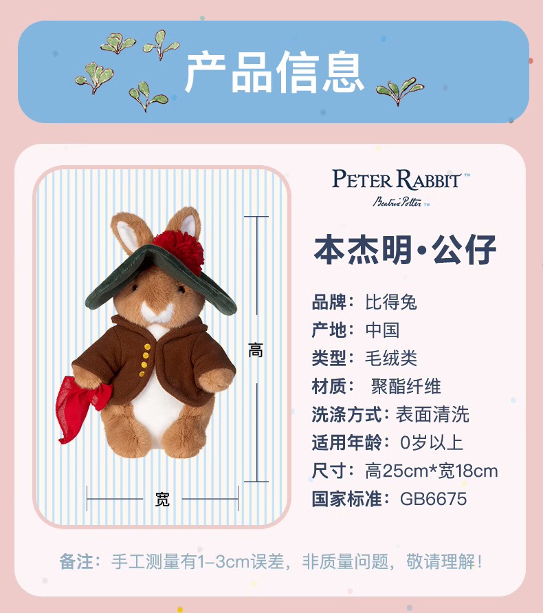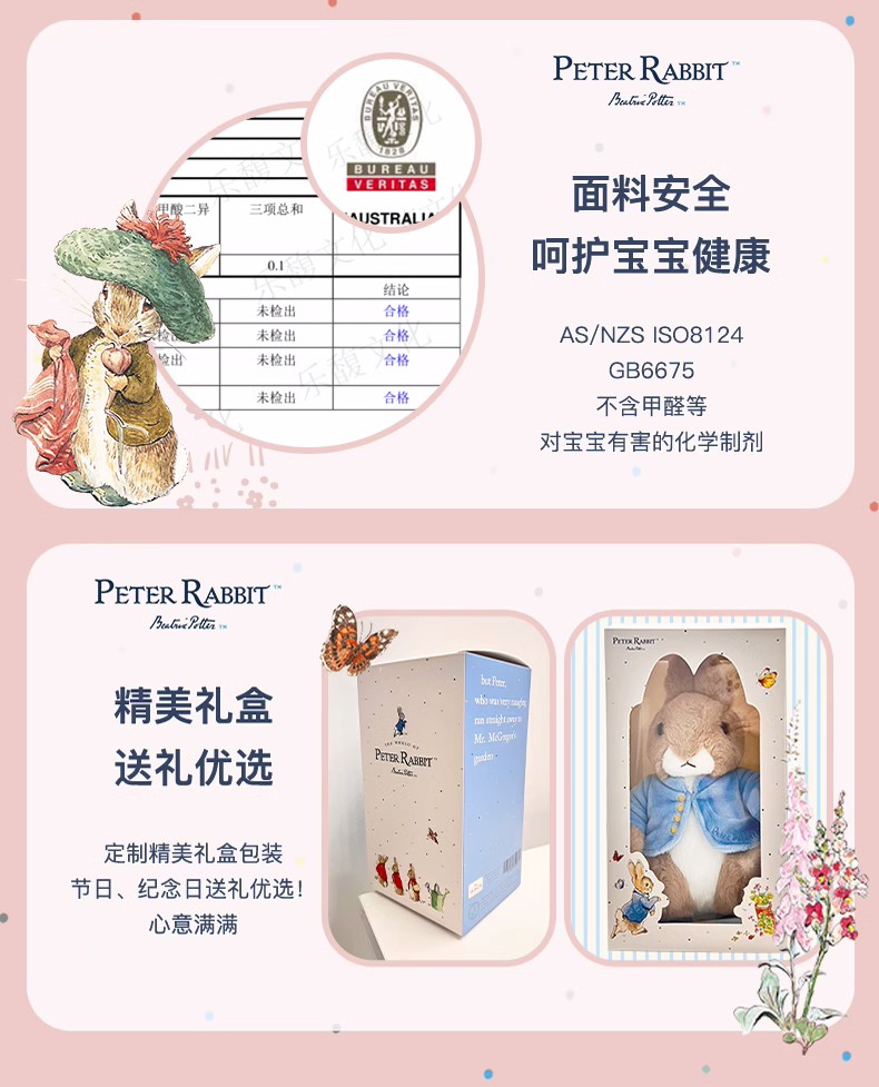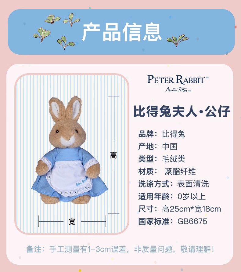 英国 比得兔小兔毛公仔 PeterRabbit 毛绒安抚玩具可爱卡通玩偶礼物25cm(手感更佳)