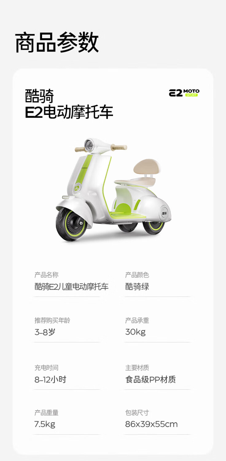 酷骑E2小绿芽儿童电动车摩托车3-8岁 ZJ