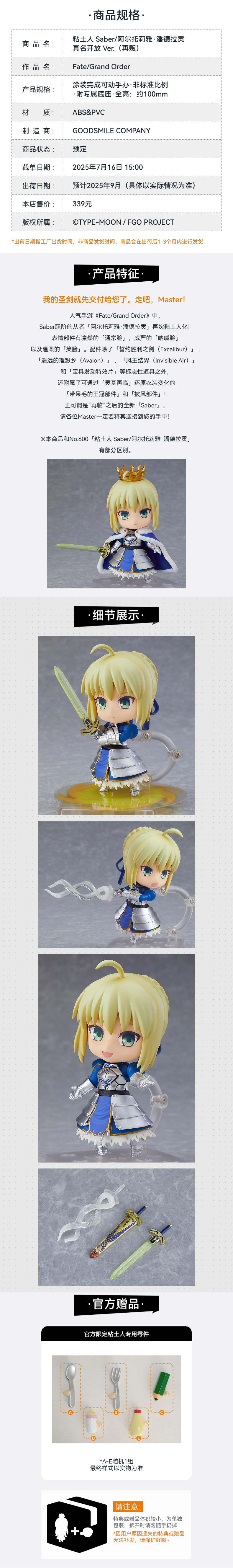 【GSC预售定金】粘土人 Saber阿尔托莉雅·潘德拉贡 真名开放Ver.