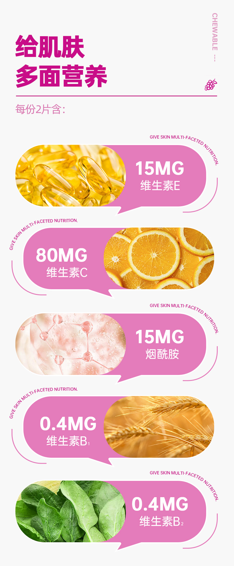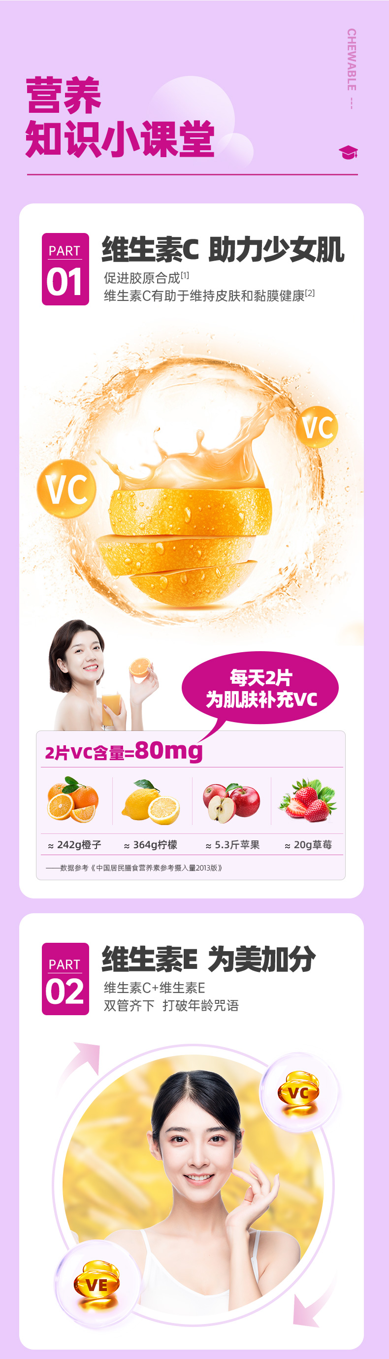 【拍1发4】黄金搭档维生素C维生素E烟酰胺咀嚼片男女维C维E葡萄籽提取物