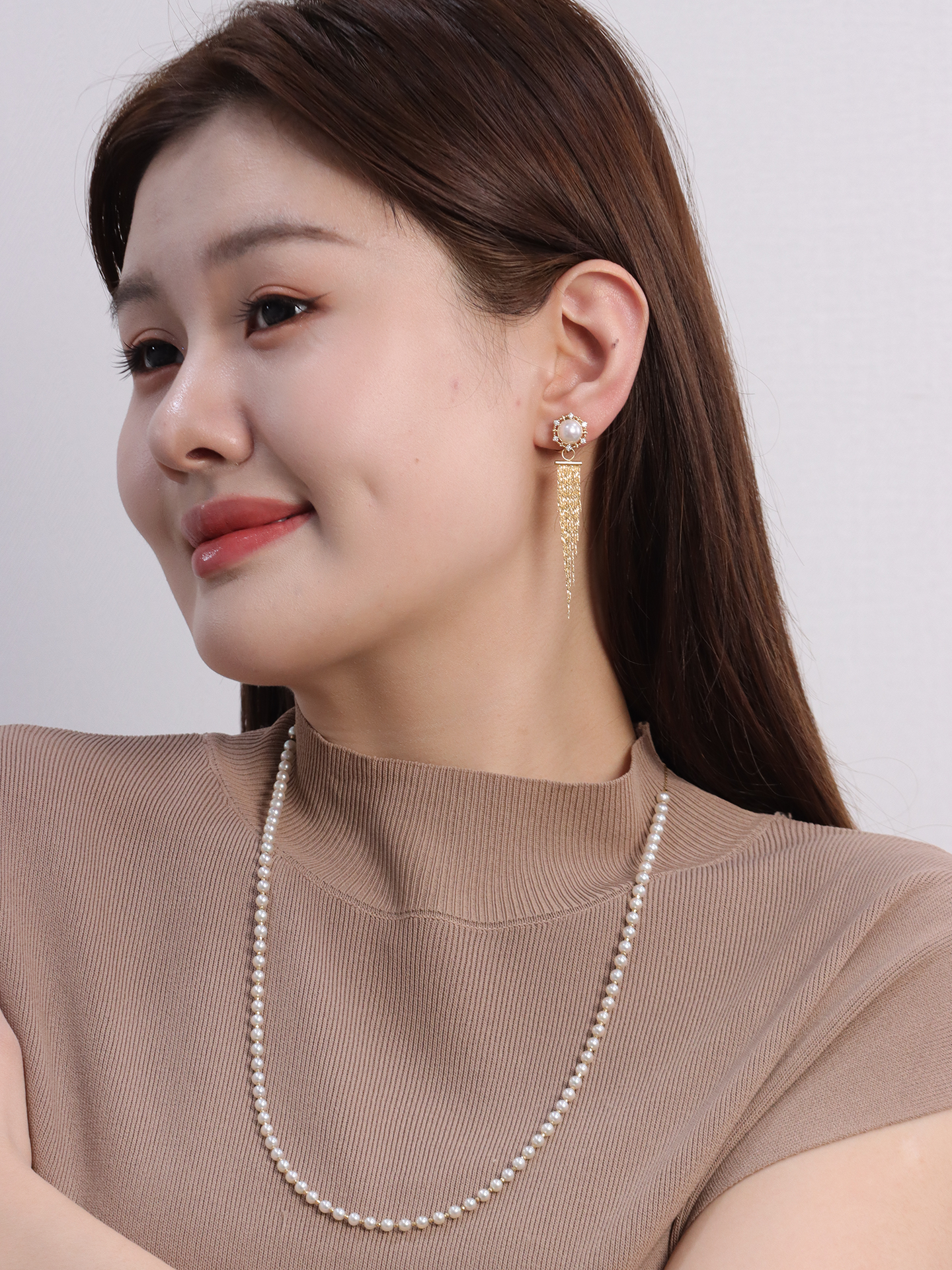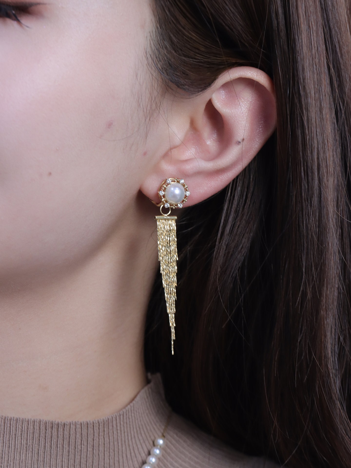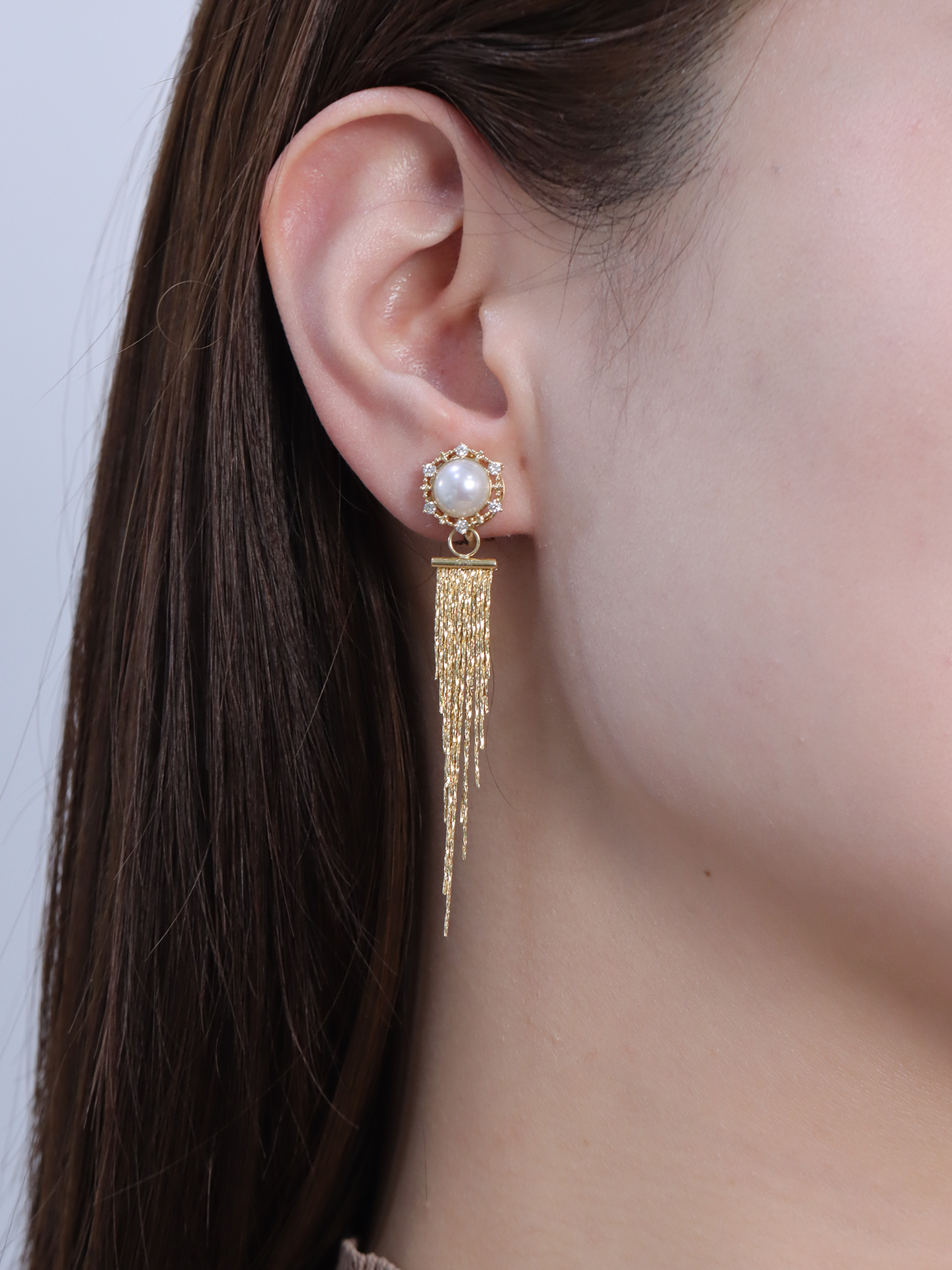【挚友限定】太阳花-18K金Akoya珍珠流苏耳夹