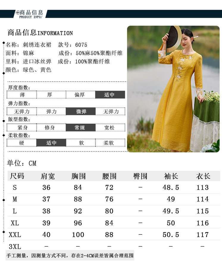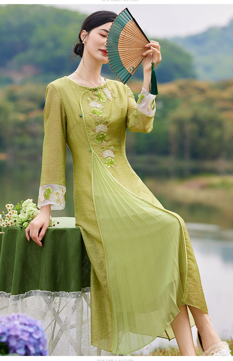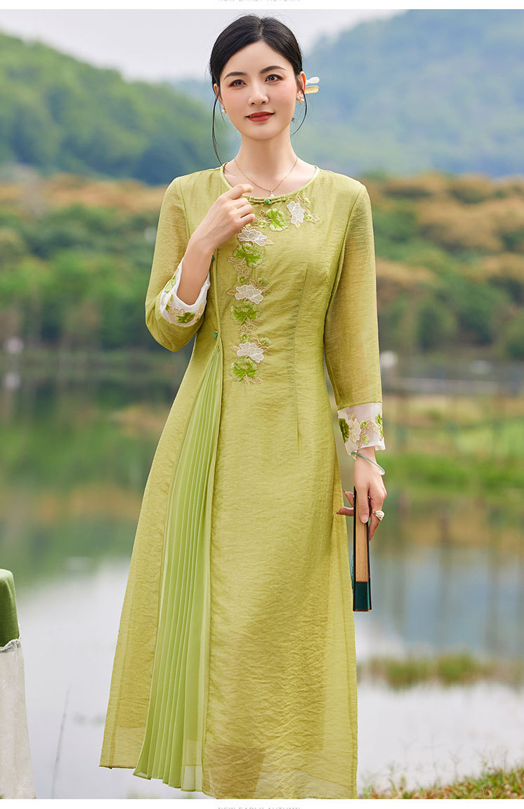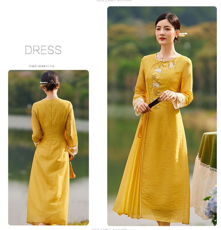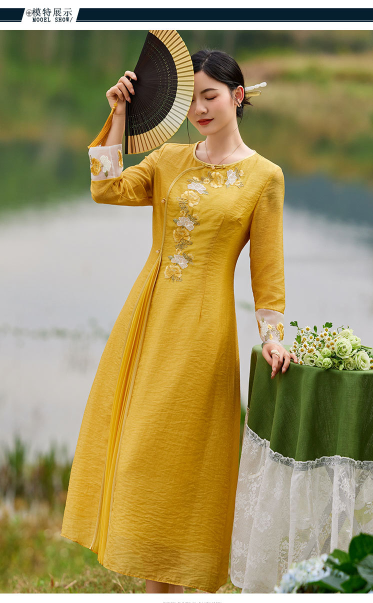 复古民族风,新中式禅意禅服圆领盘扣修身奥黛款连衣裙OG-6075