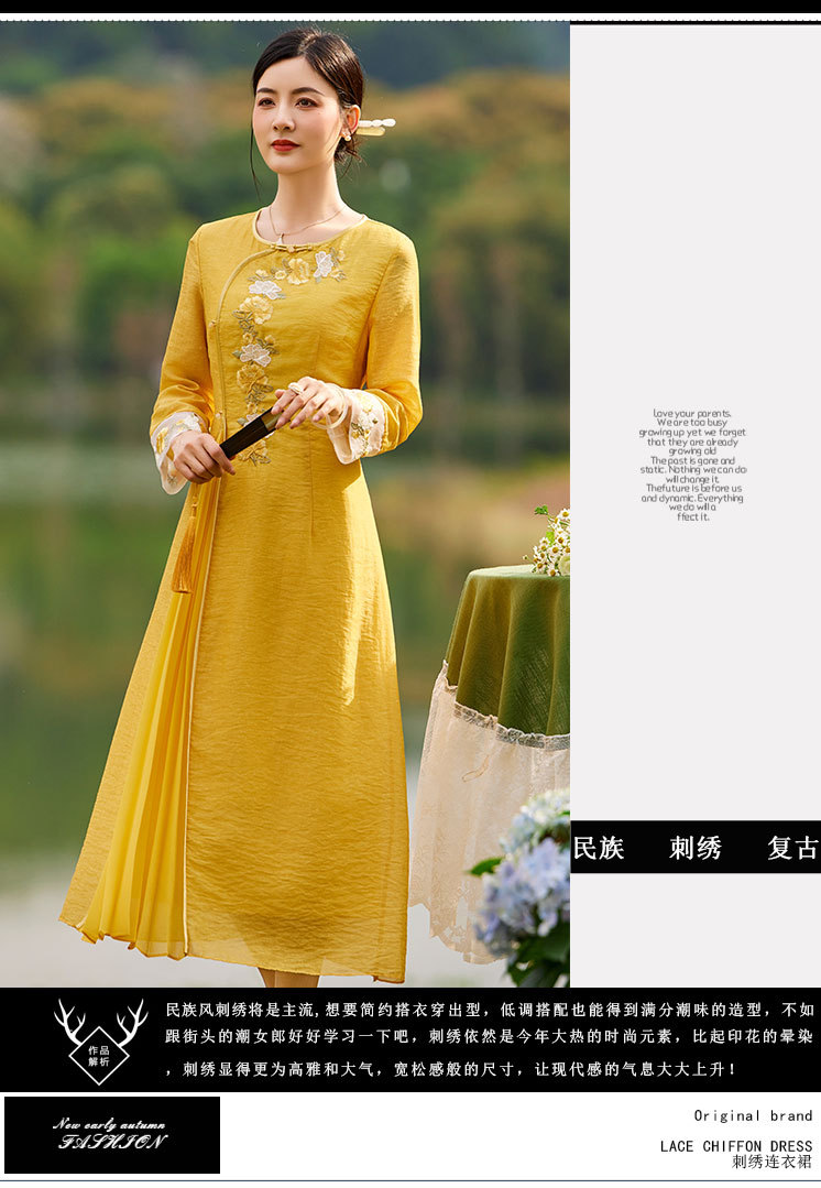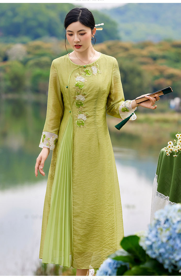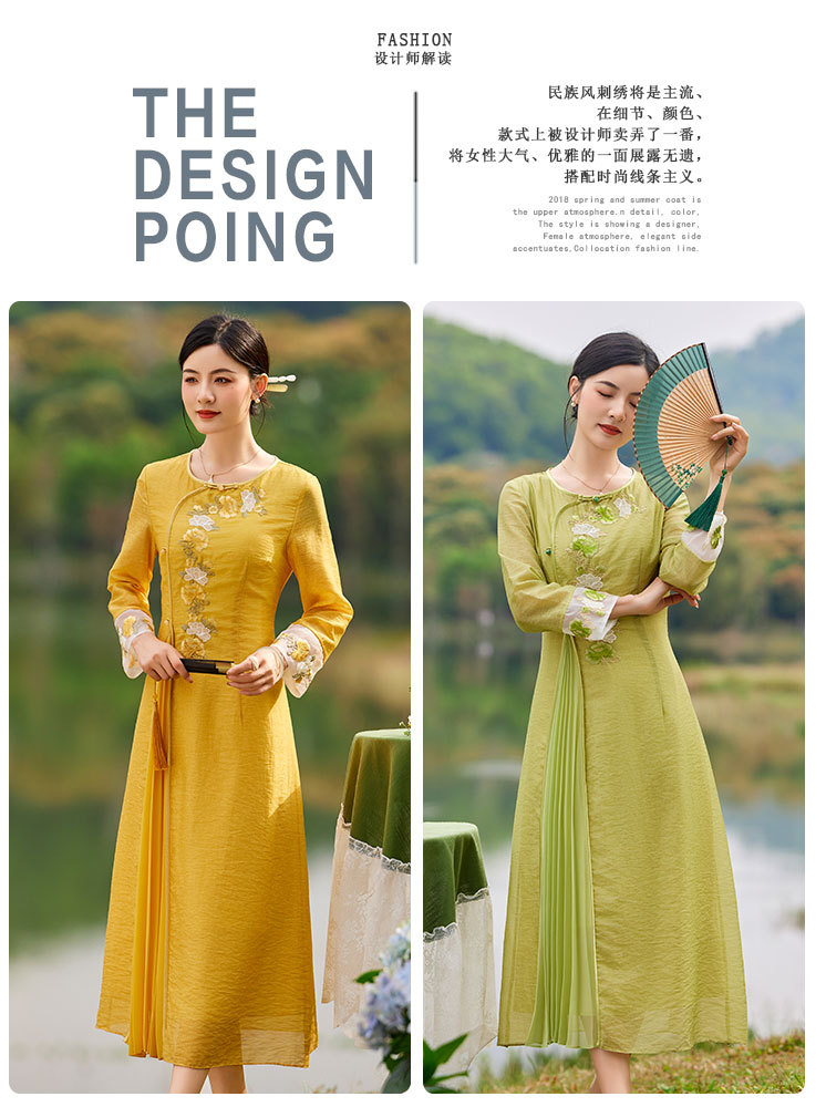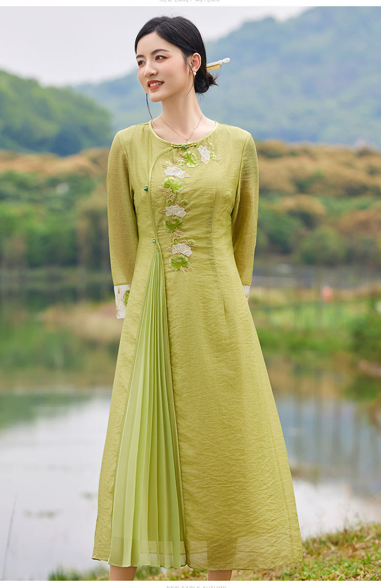 复古民族风,新中式禅意禅服圆领盘扣修身奥黛款连衣裙OG-6075