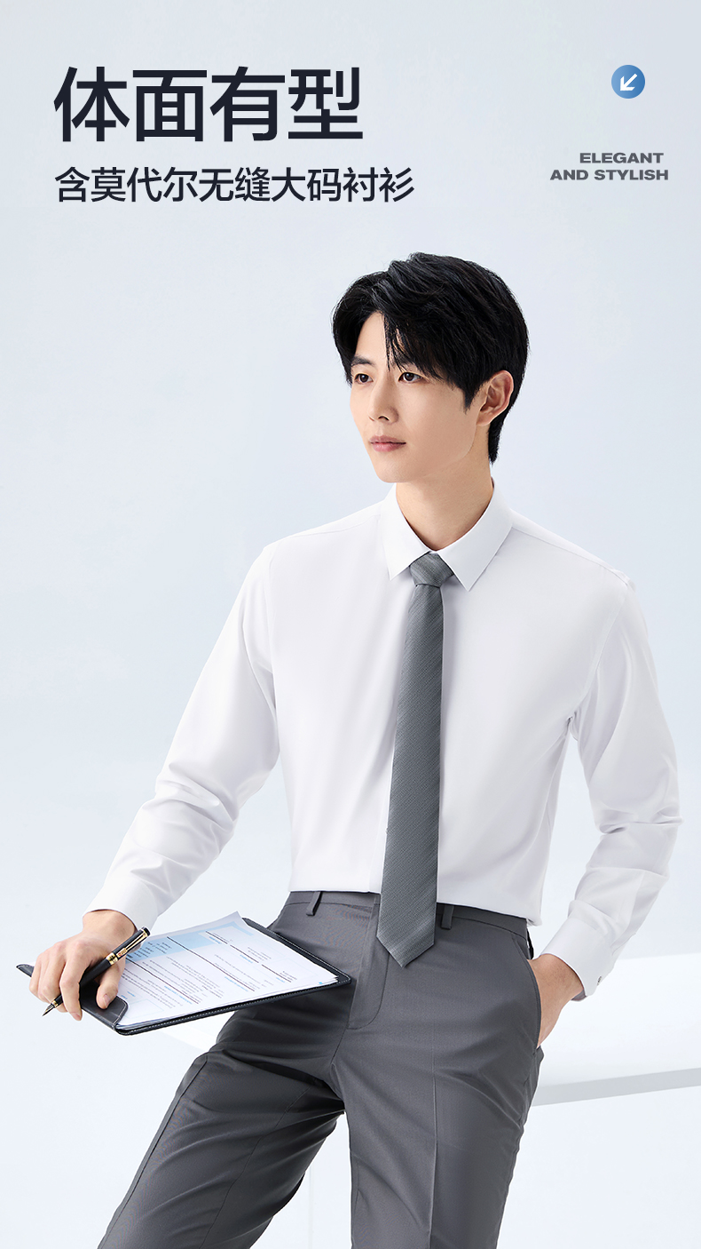 【无缝领/大码衬衫】柒牌男装2026春季新款莫代尔商务翻领衬衫130A70710