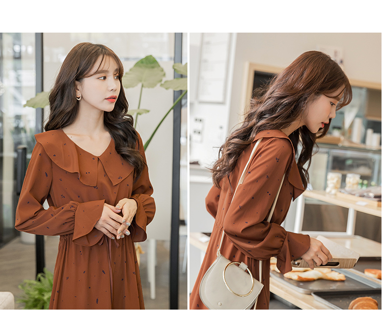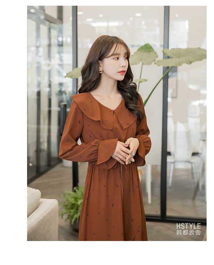 韩都衣舍2019韩版女装春装新款收腰气质碎花中长款连衣裙OY8501焕