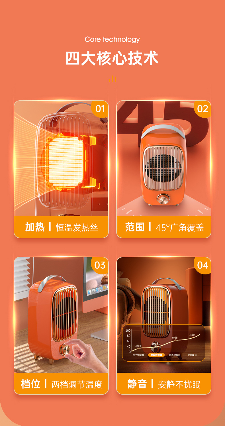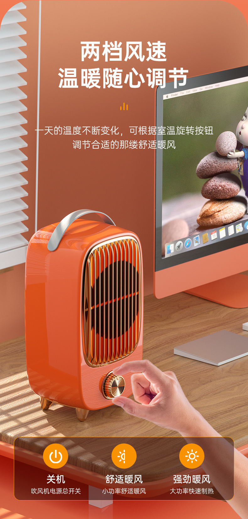 【即开即热!智能恒温】爆款桌面静音小型暖风机办公室居家宿舍取暖器速热节能迷你热风机。两档风速 温暖随心调节。ry