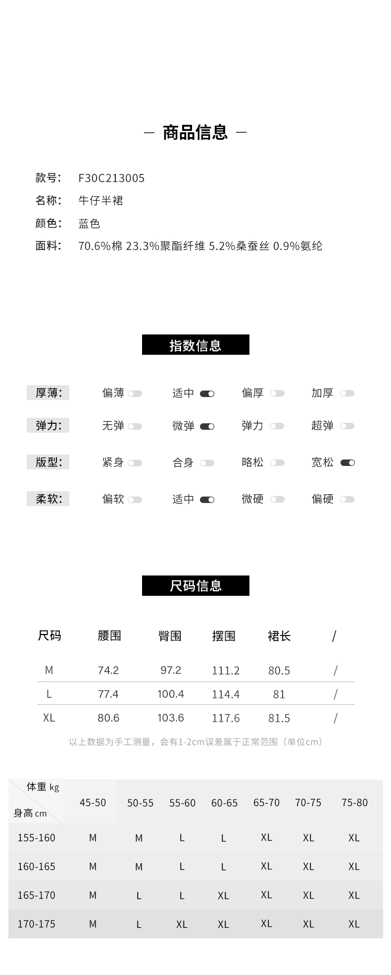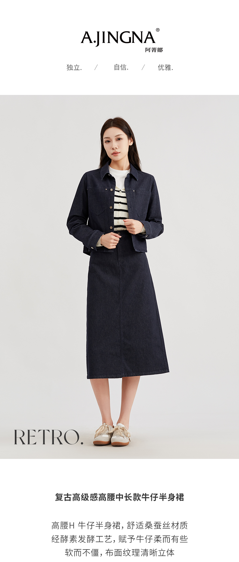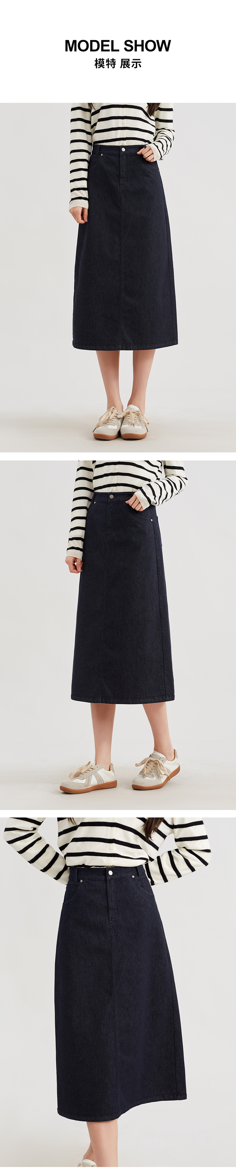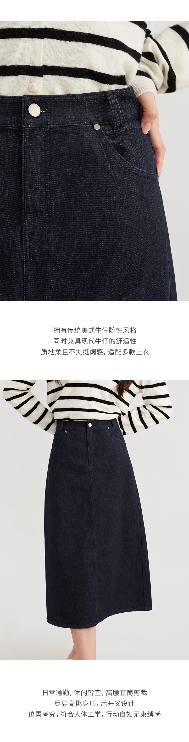 【现代牛仔】阿菁娜复古高级感高腰中长款牛仔半身裙F30C213005
