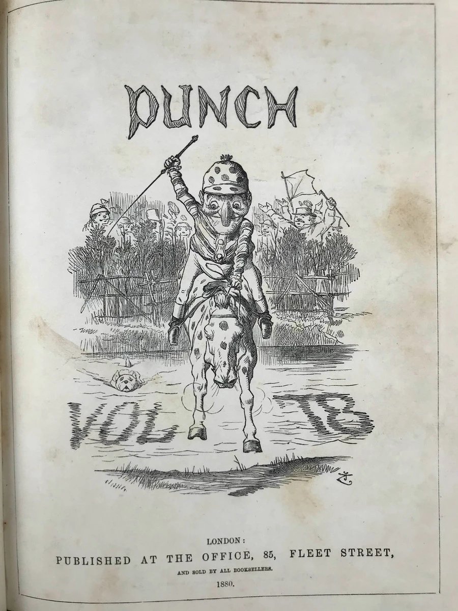 含藏书票!1880年 英国讽刺漫画杂志《笨拙》 数百幅插图 漆布精装16开
