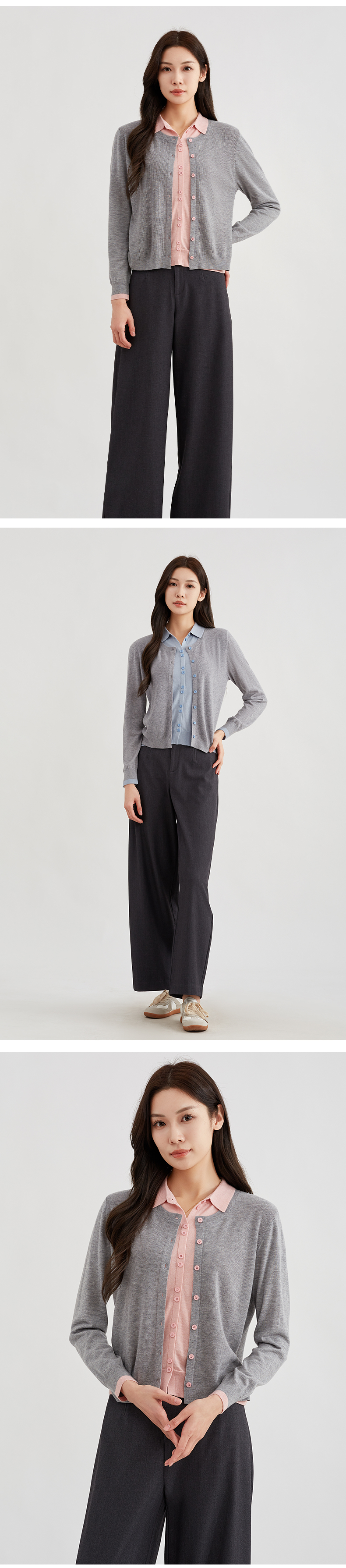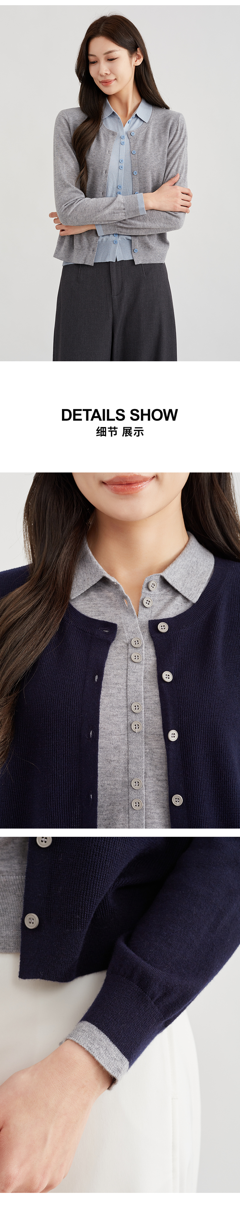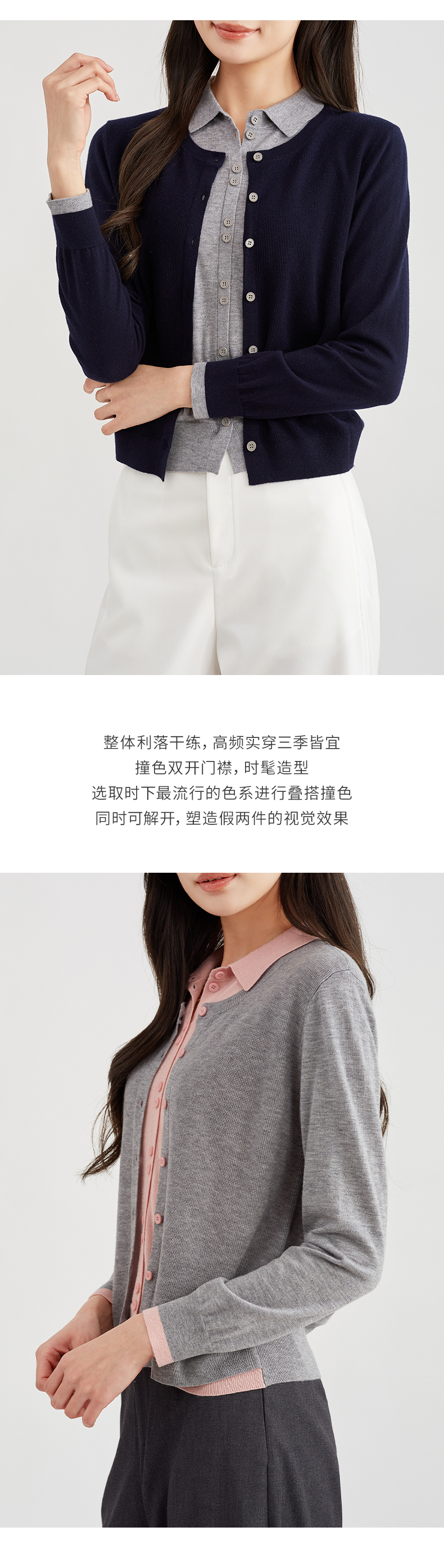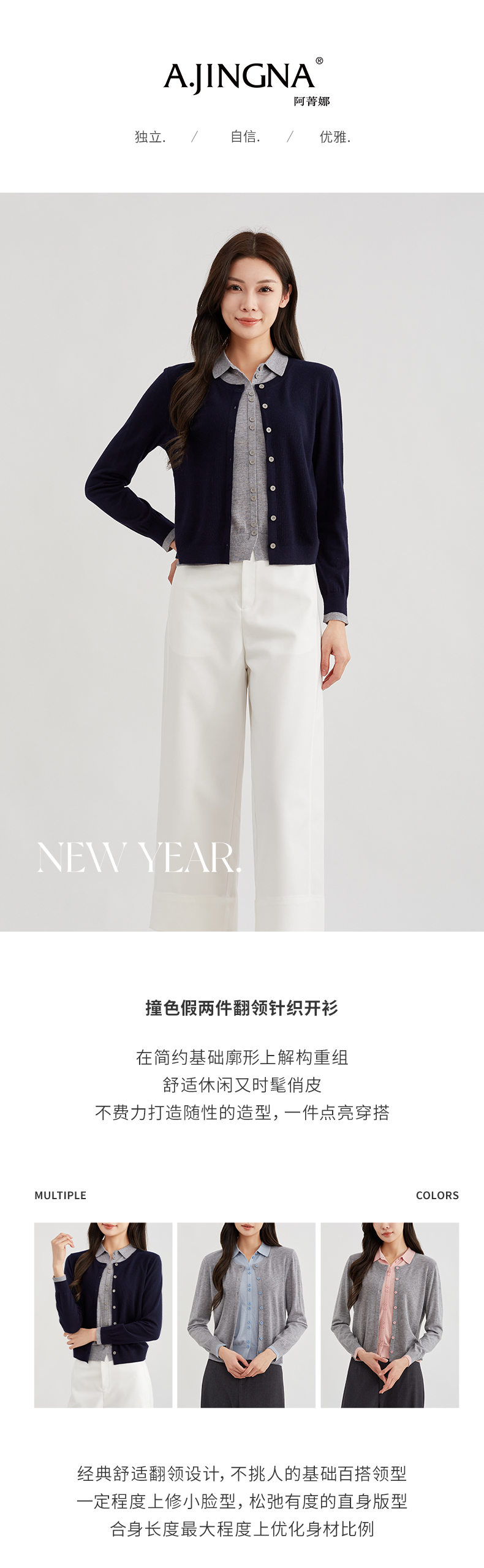 【时髦俏皮】阿菁娜撞色假两件翻领针织开衫F30C318010