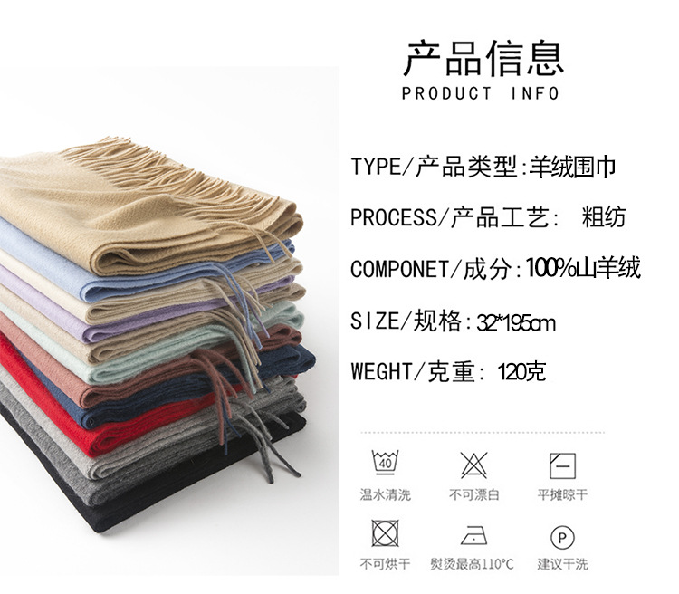 纯色羊绒围巾韩版简约亲肤舒适女款冬季加厚时尚保暖高端围脖32*195cm