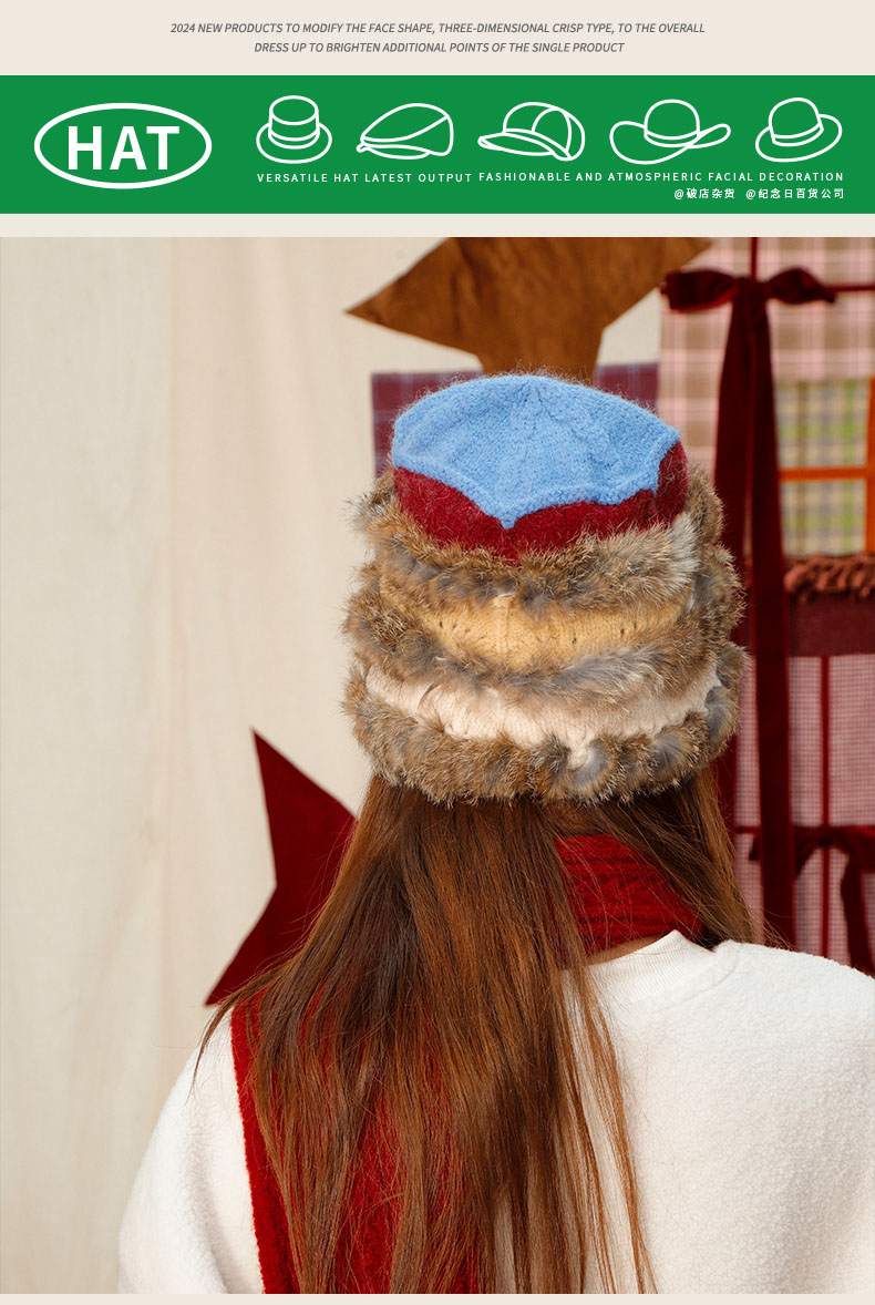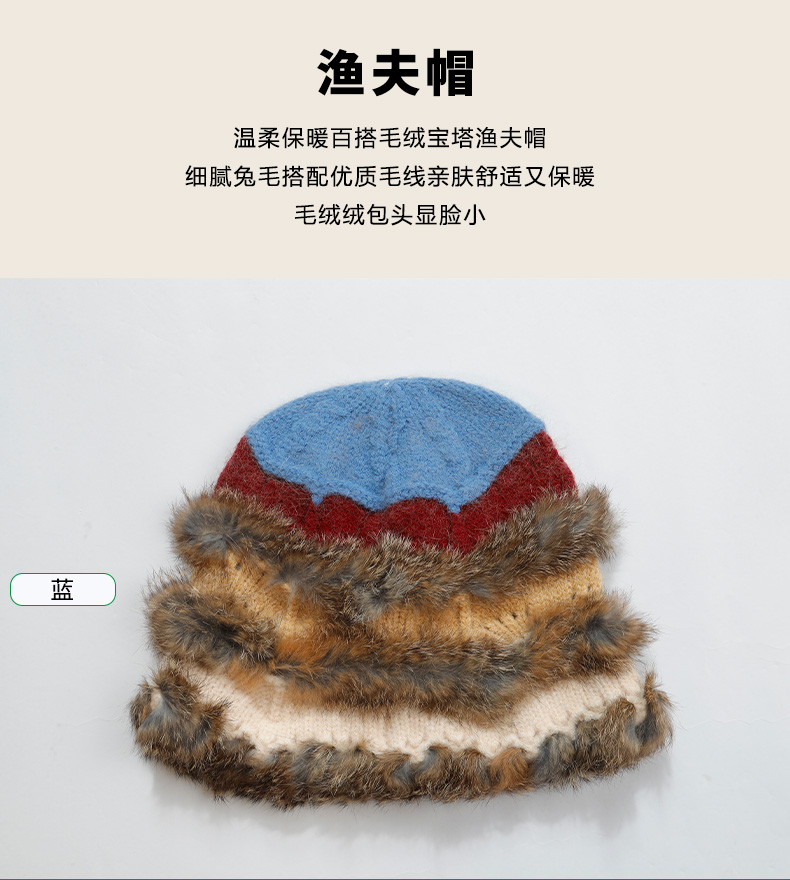 撞色针织毛绒盆帽渔夫帽-纪念日百货门店同款167044970