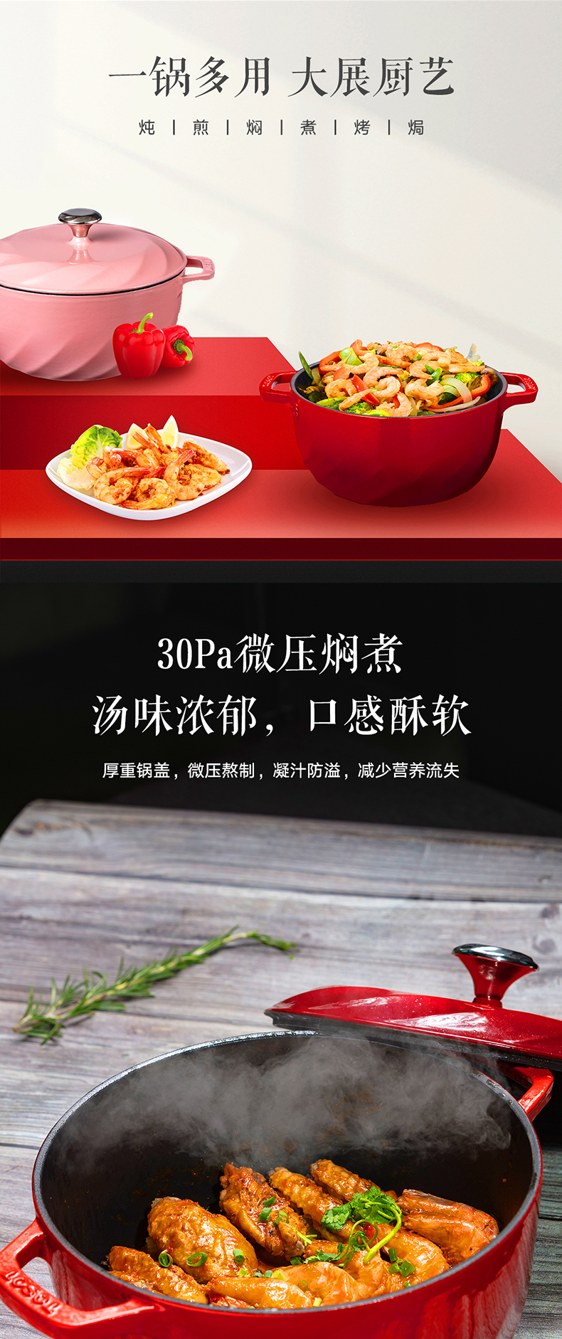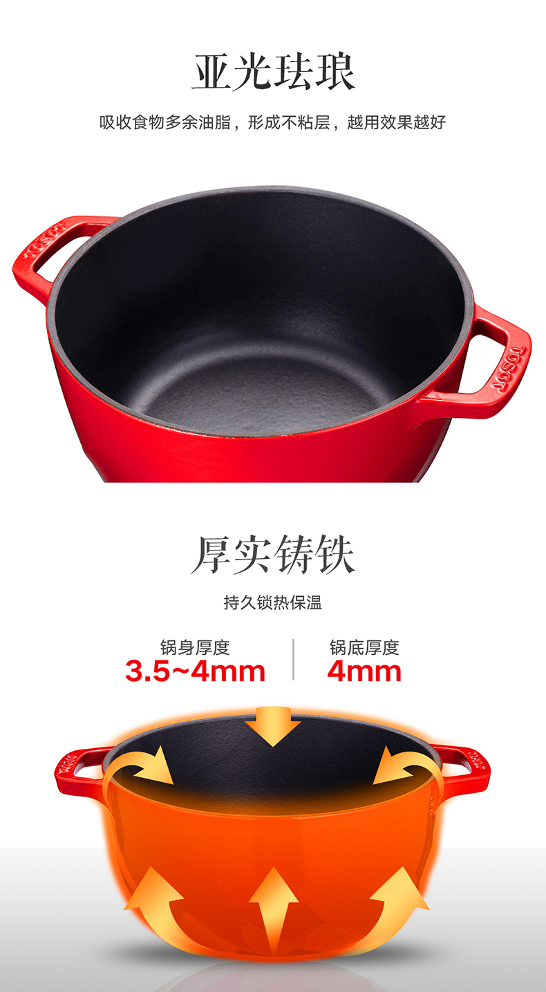 【预售】格力·大松珐琅铸铁锅 3.8L 家用炖锅汤锅焖烧煮锅 GTF24-T01 黛红