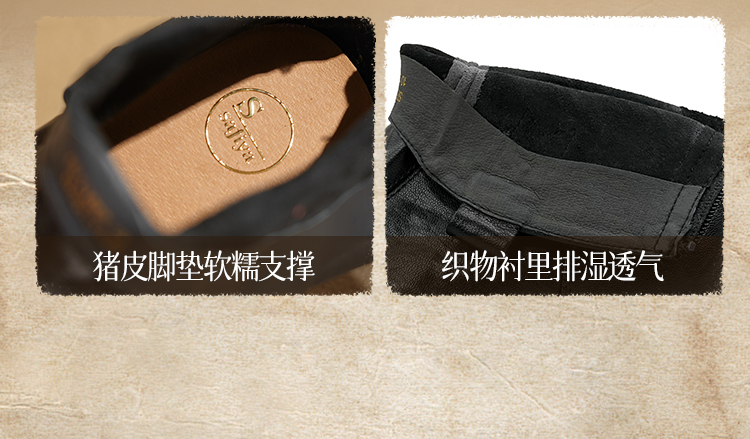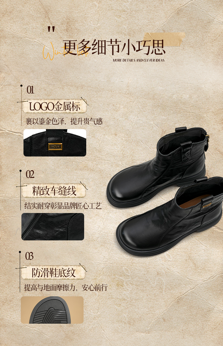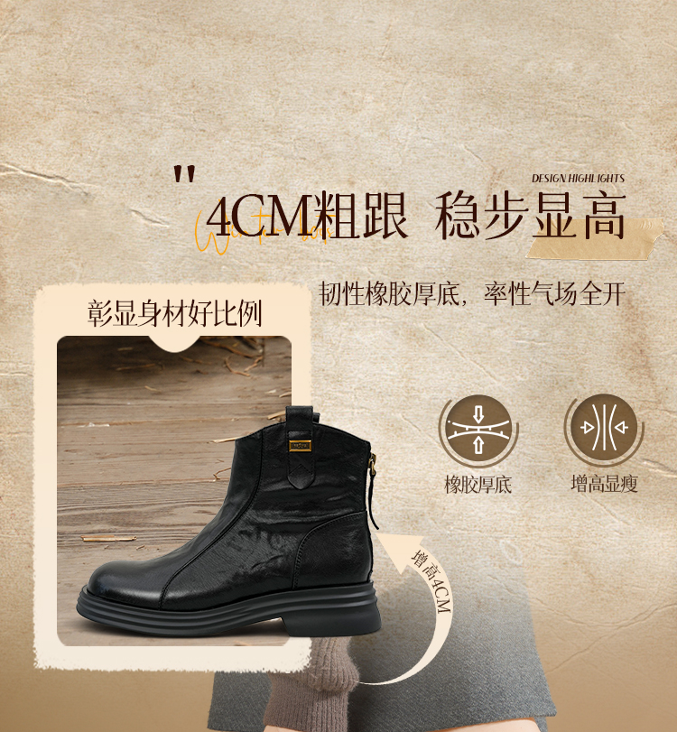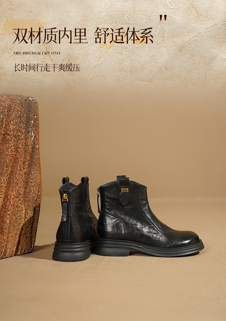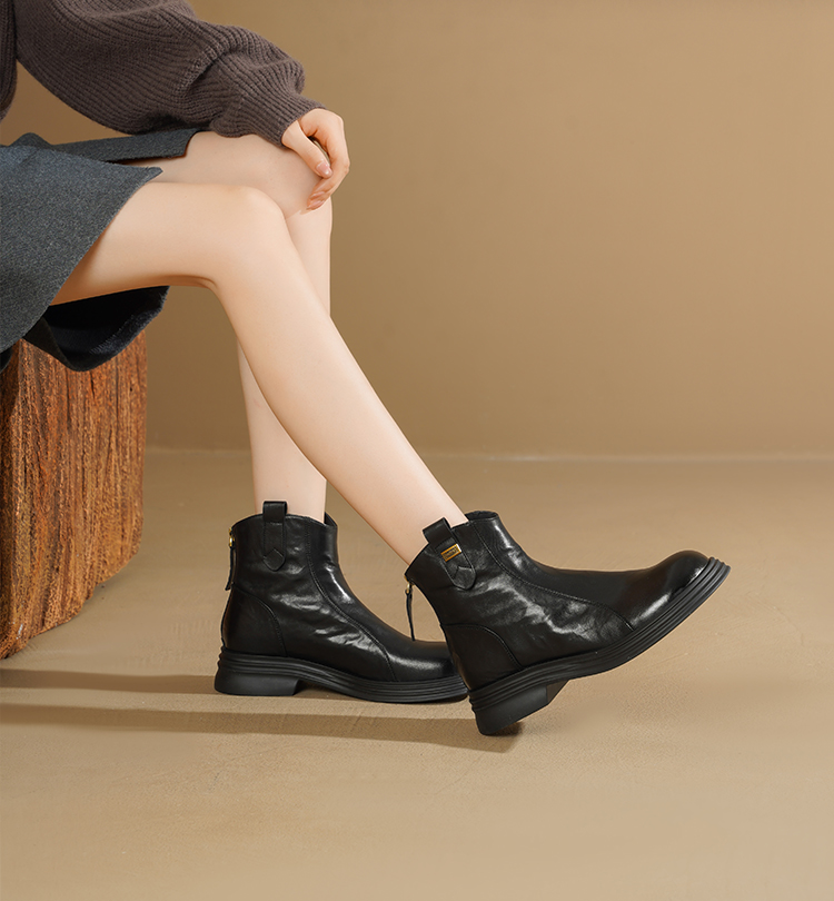 Safiya/索菲娅2025羊皮褶皱英伦风粗跟厚底百搭圆头显瘦短踝靴SFD4116013/SFD4118013