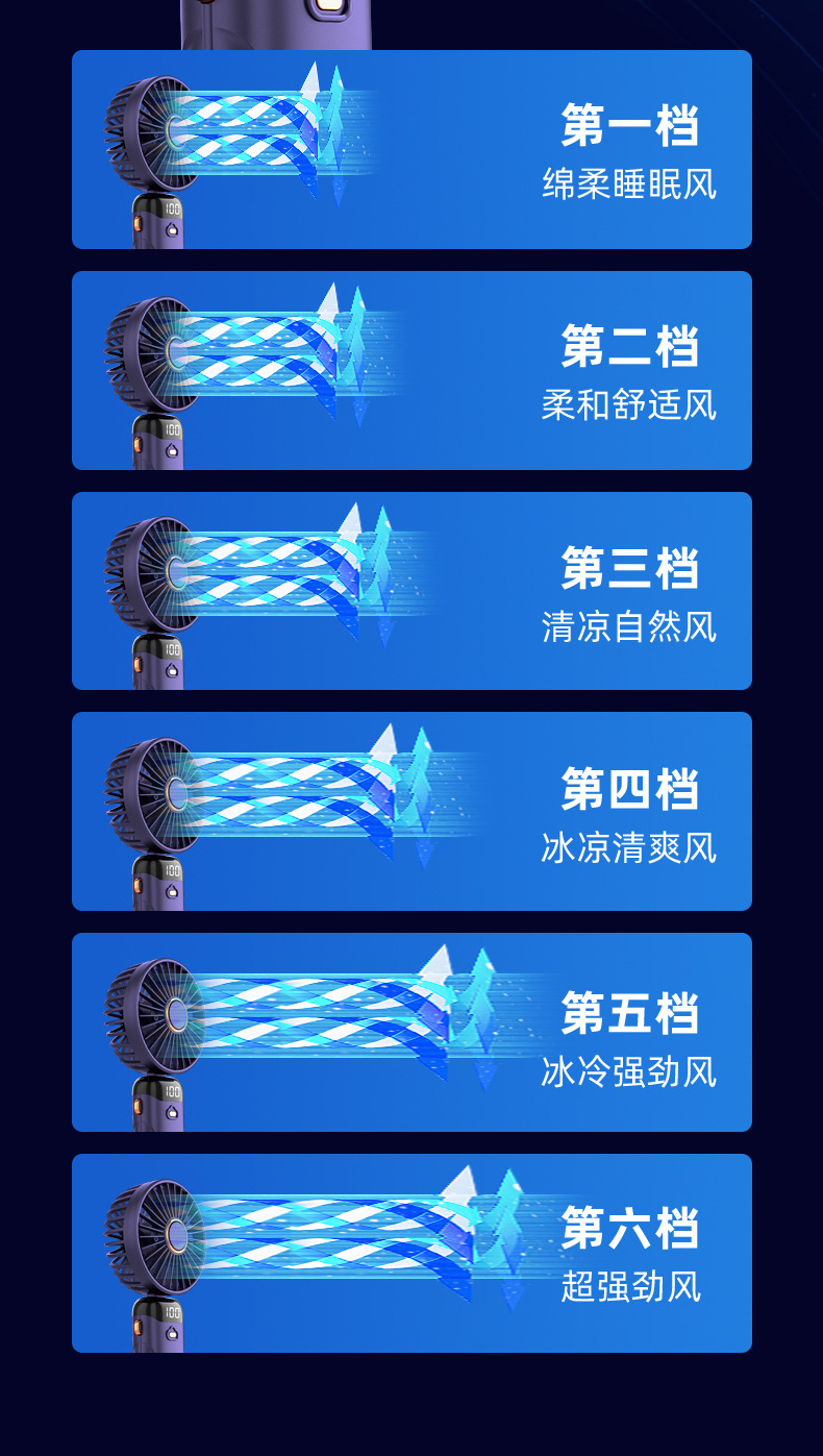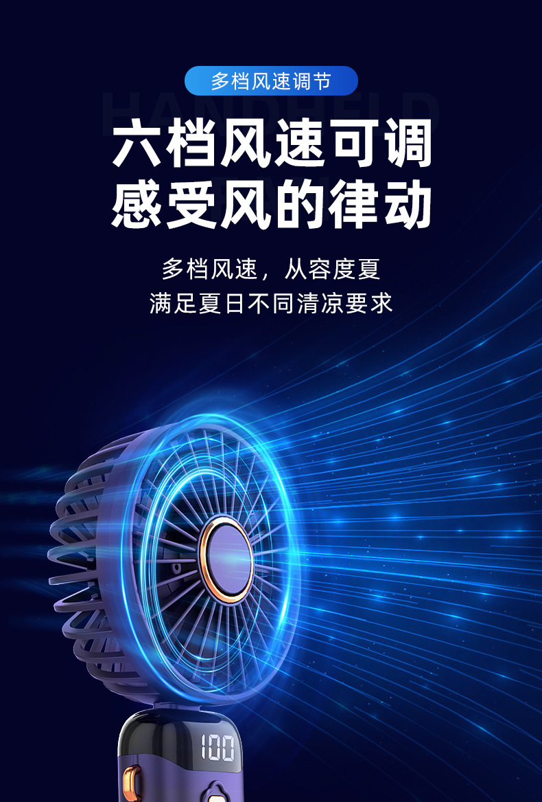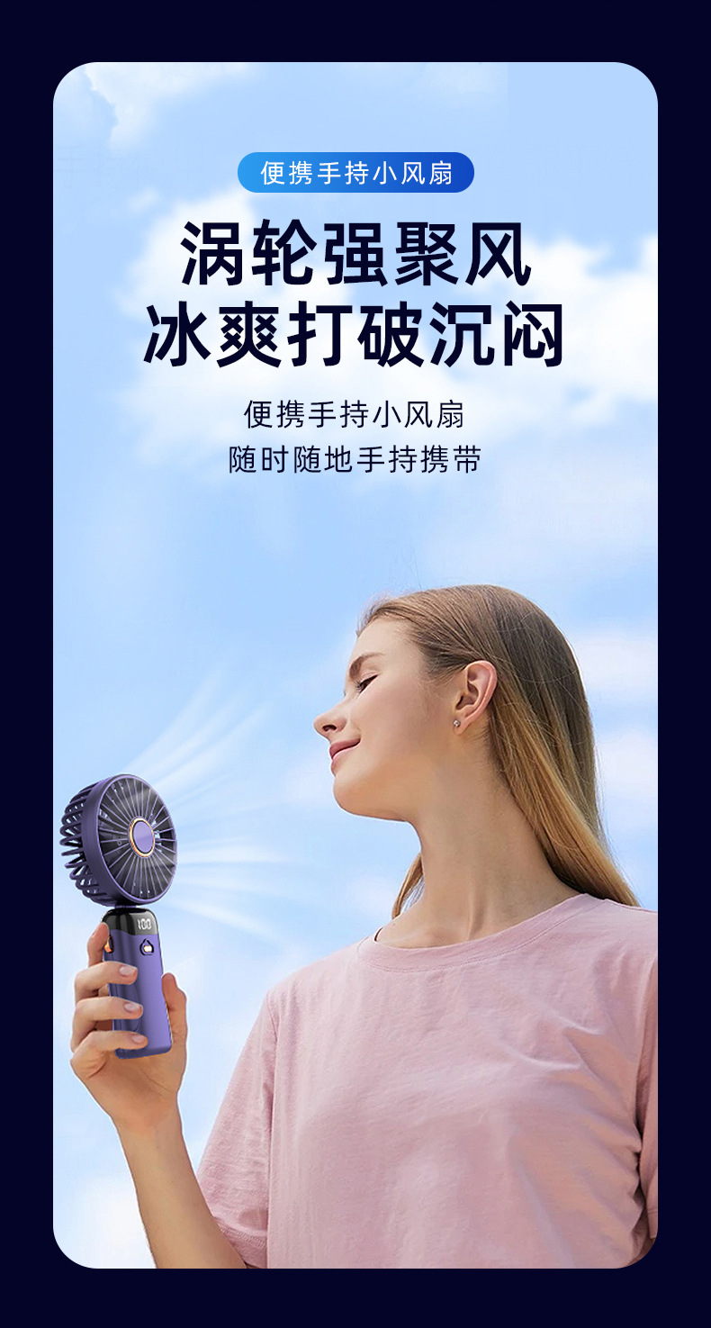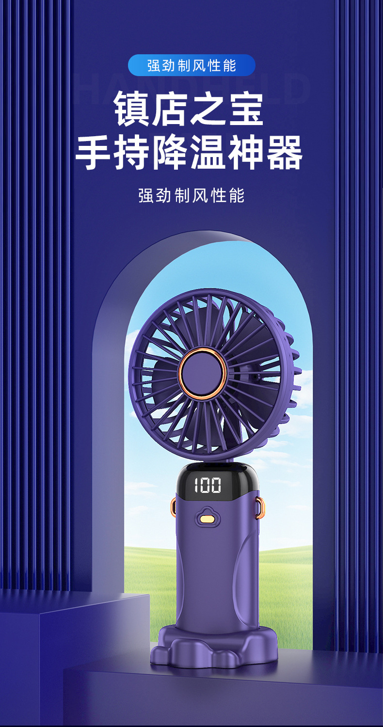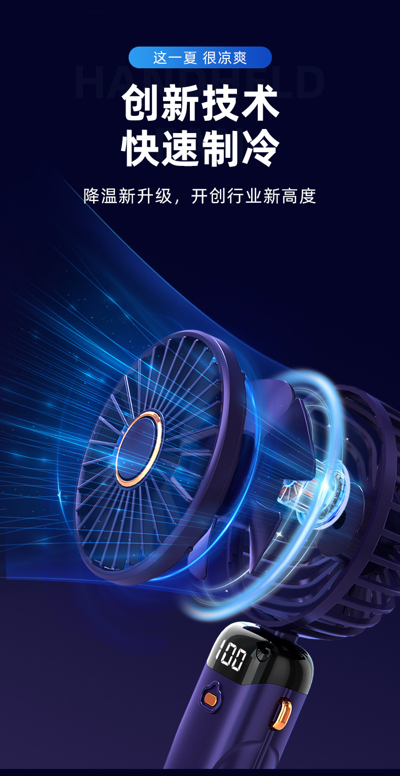 「七彩风扇!智能数显」新款手持折叠小风扇 usb迷你便携风扇大风力数显多功能挂脖小风扇生活电器