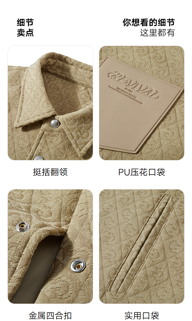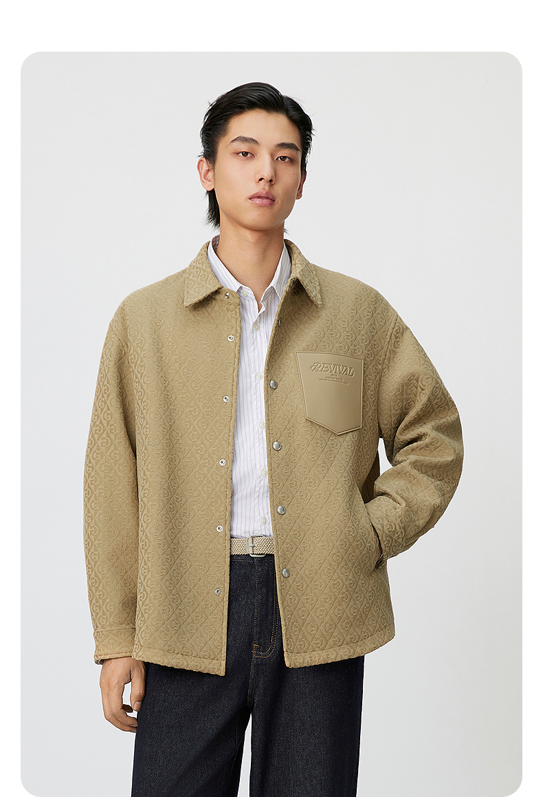 GXG男装 满印提花衬衫式宽松通勤简约口袋夹克外套 25年春热卖
