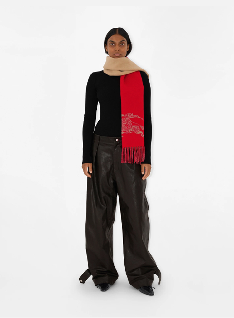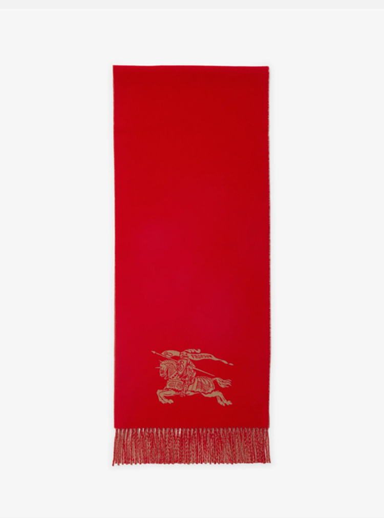BURBERRY 巴宝莉 女士双面两用马术骑士徽标羊绒围巾 红色 8078786 B7308