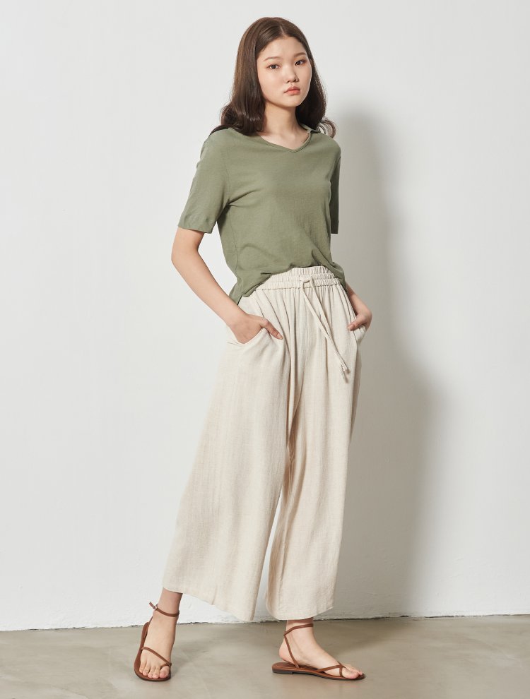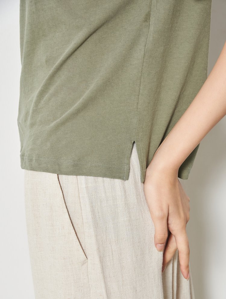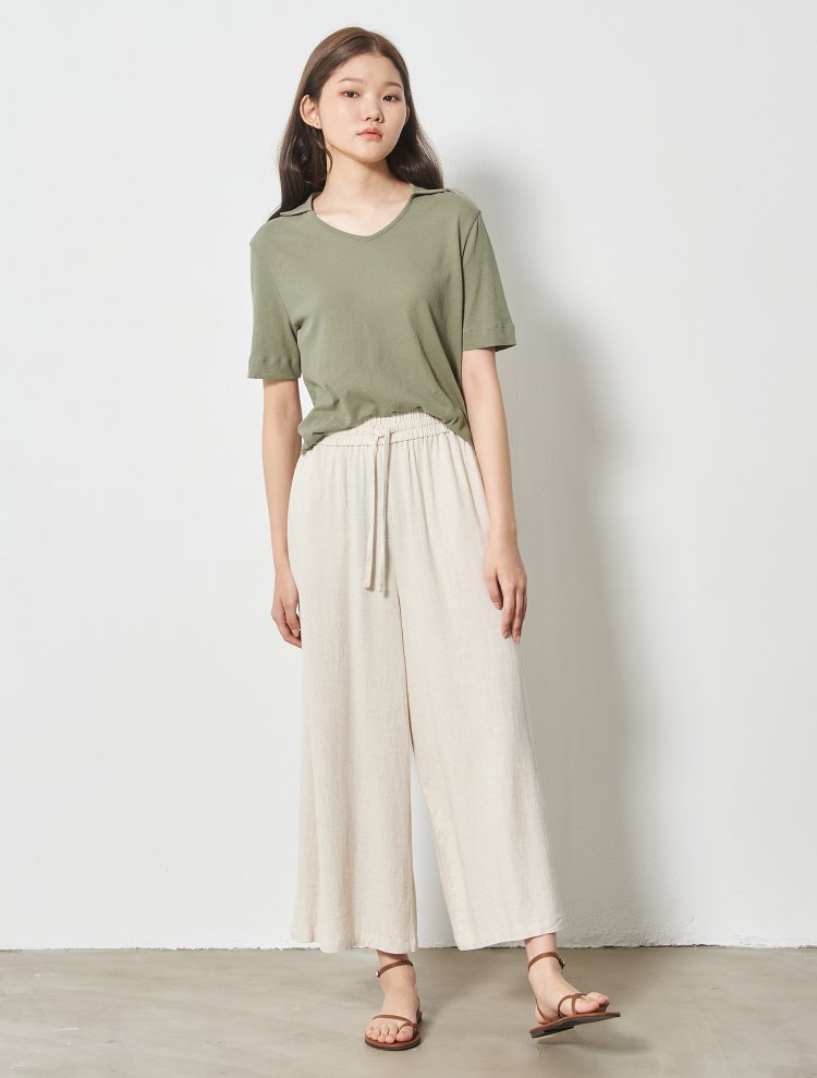 8seconds Khaki linen blended stand卡其色亚麻混纺立领T恤女款JPY带授权招加盟代理