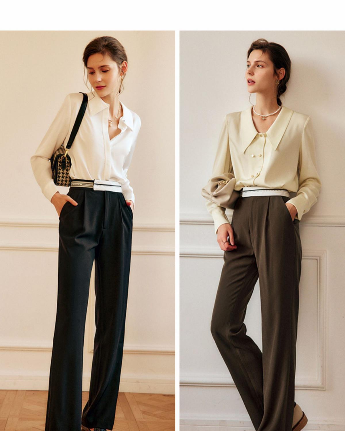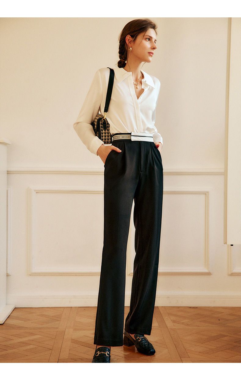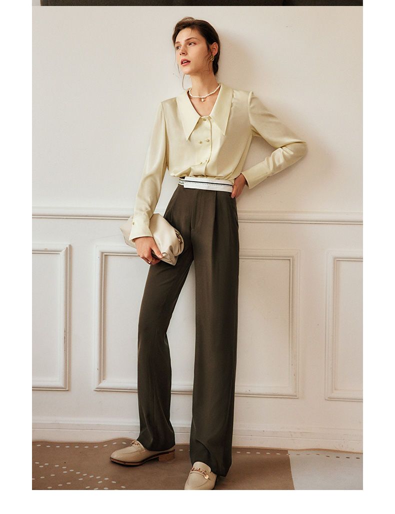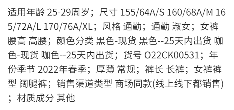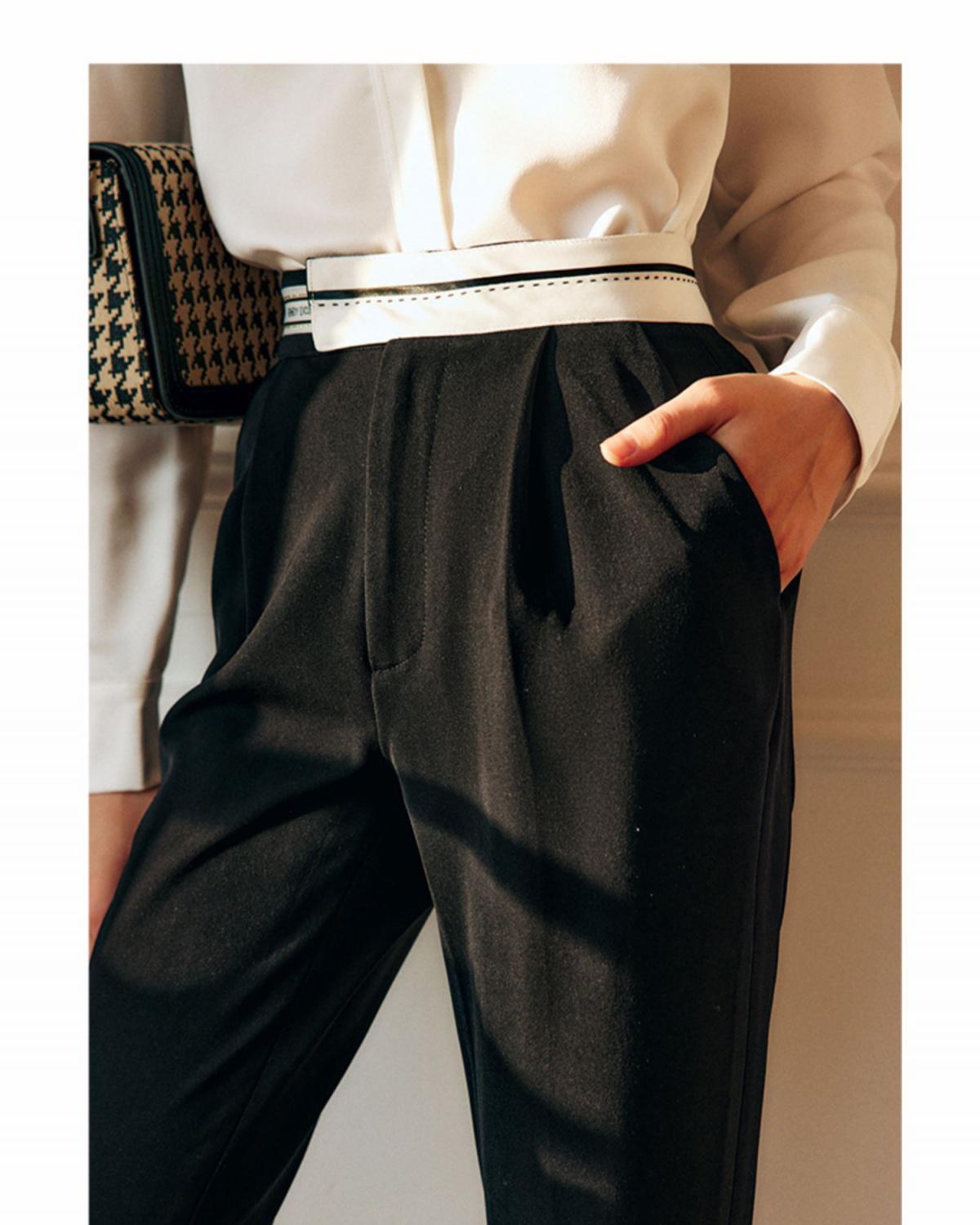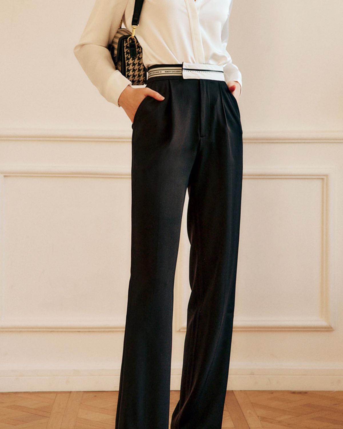 欧芮儿西装休闲裤女春季2022年新款高腰显瘦时尚气质设计感阔腿裤