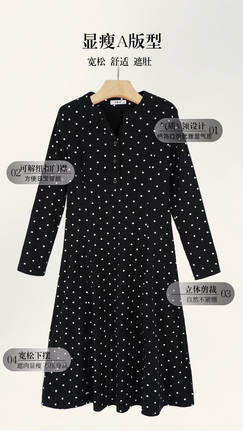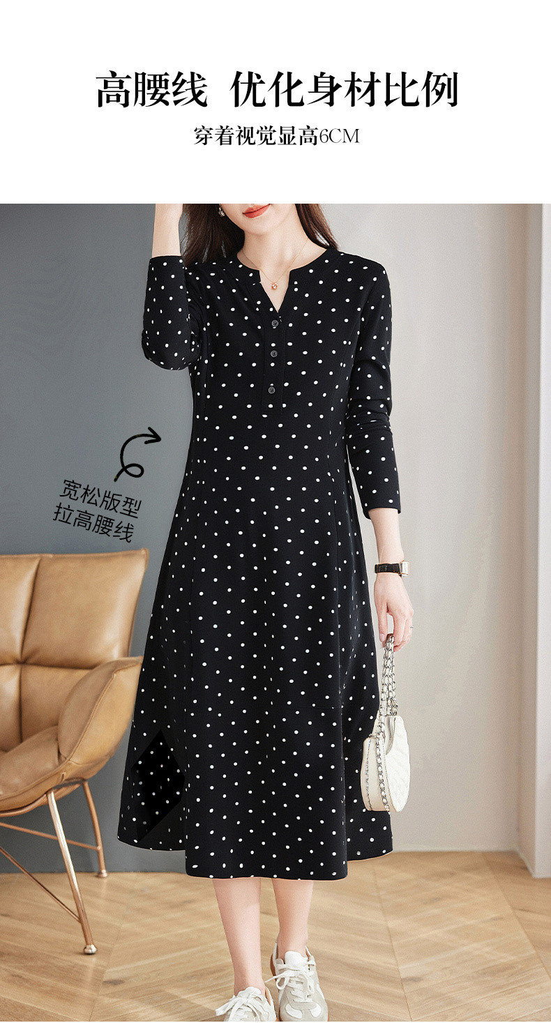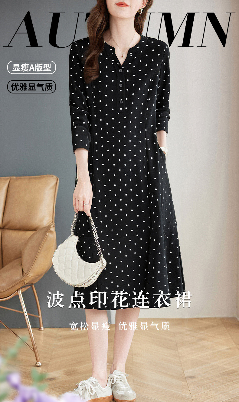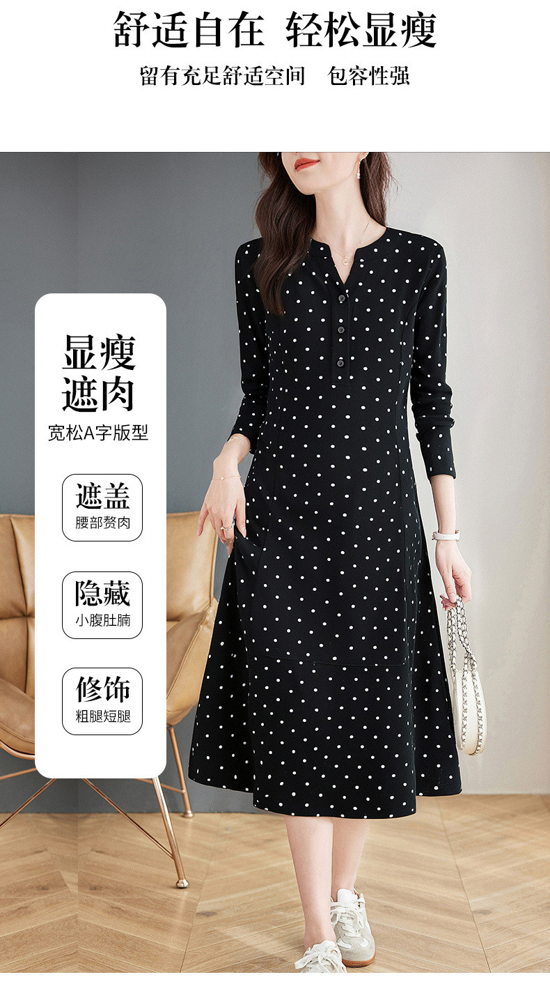 早春波点长袖连衣裙女春装2026新款洋气大码V领女士裙子高级感