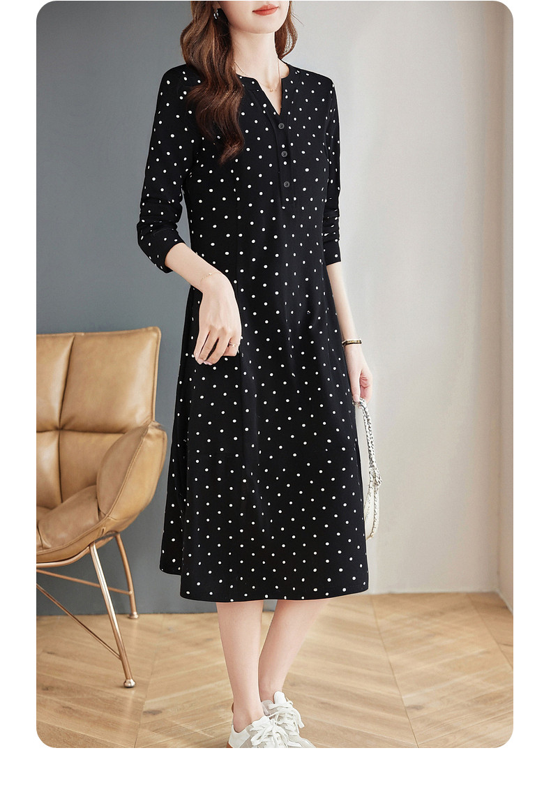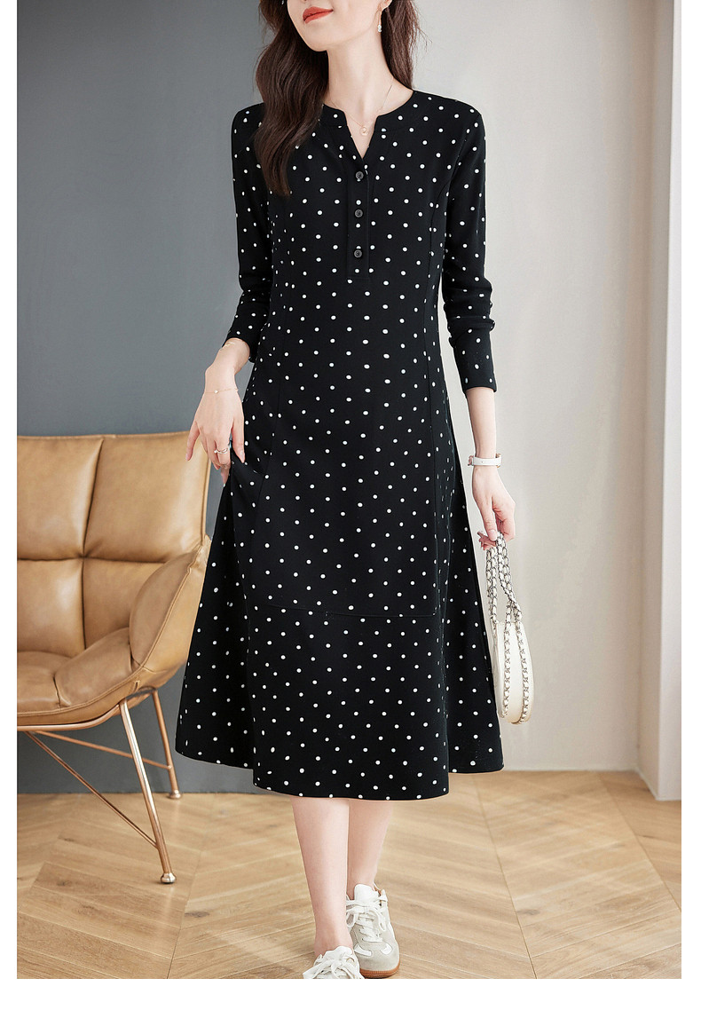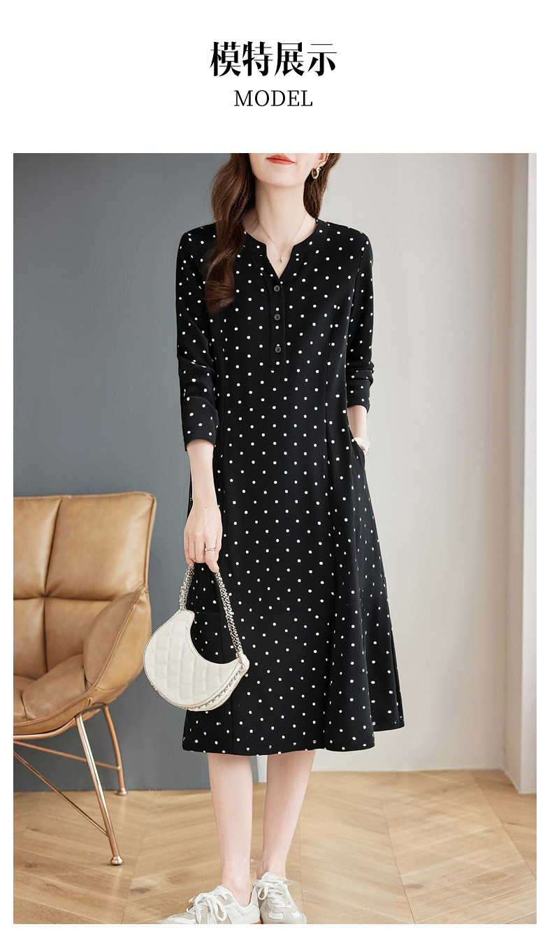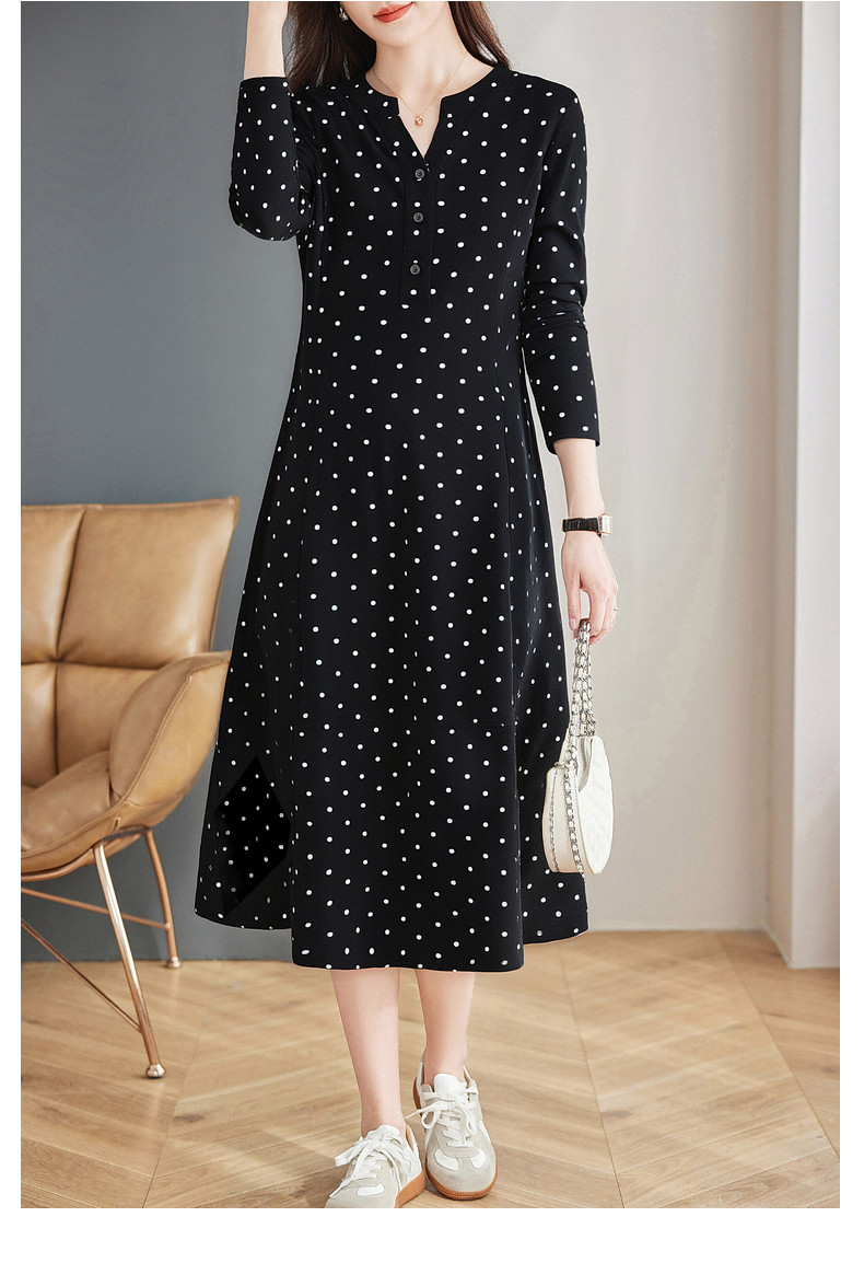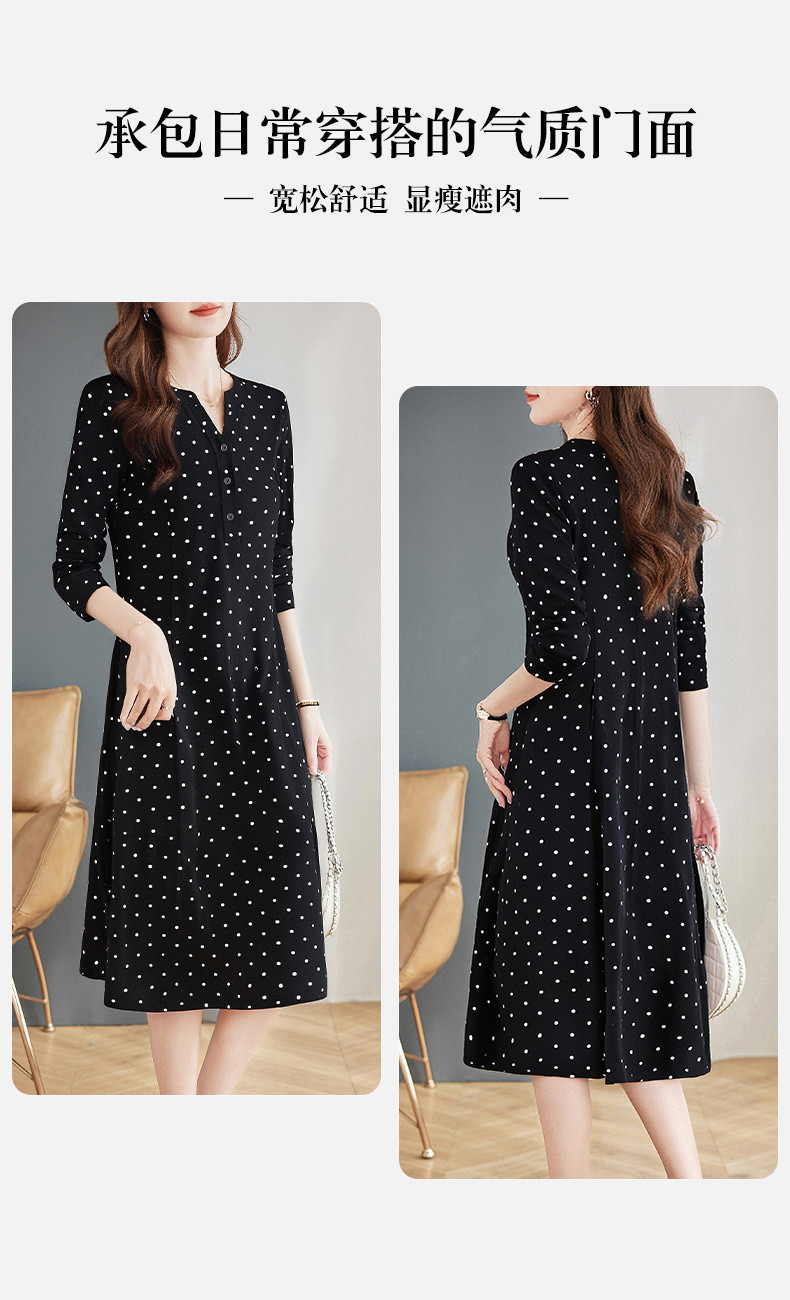 早春波点长袖连衣裙女春装2026新款洋气大码V领女士裙子高级感