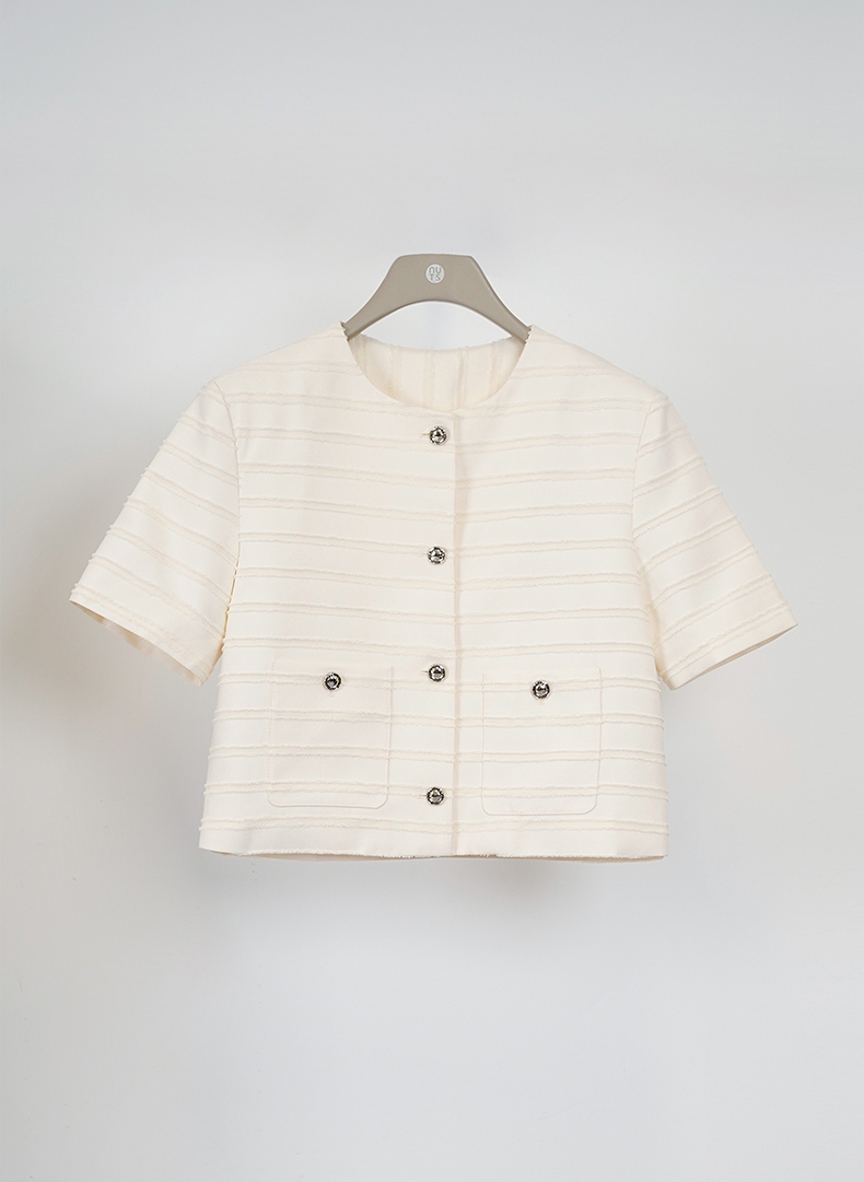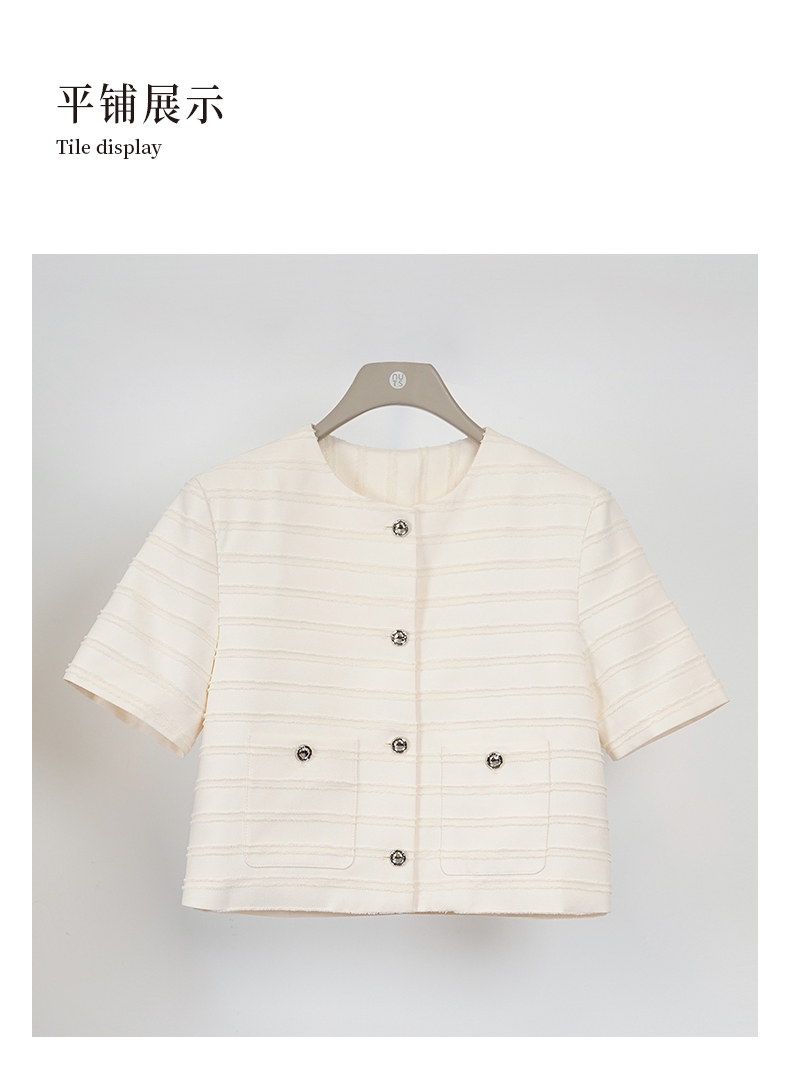 NUTS夏季新品时尚优雅修身气质百搭纯色圆领短外套418042505