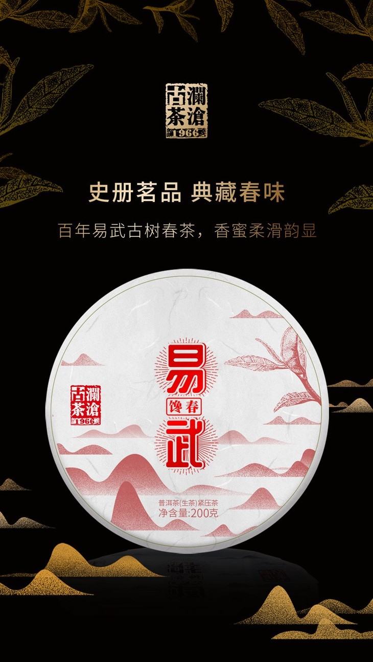 澜沧古茶2019年馋春易武古树春茶普洱茶生茶饼茶200g/片(一提拍5片)