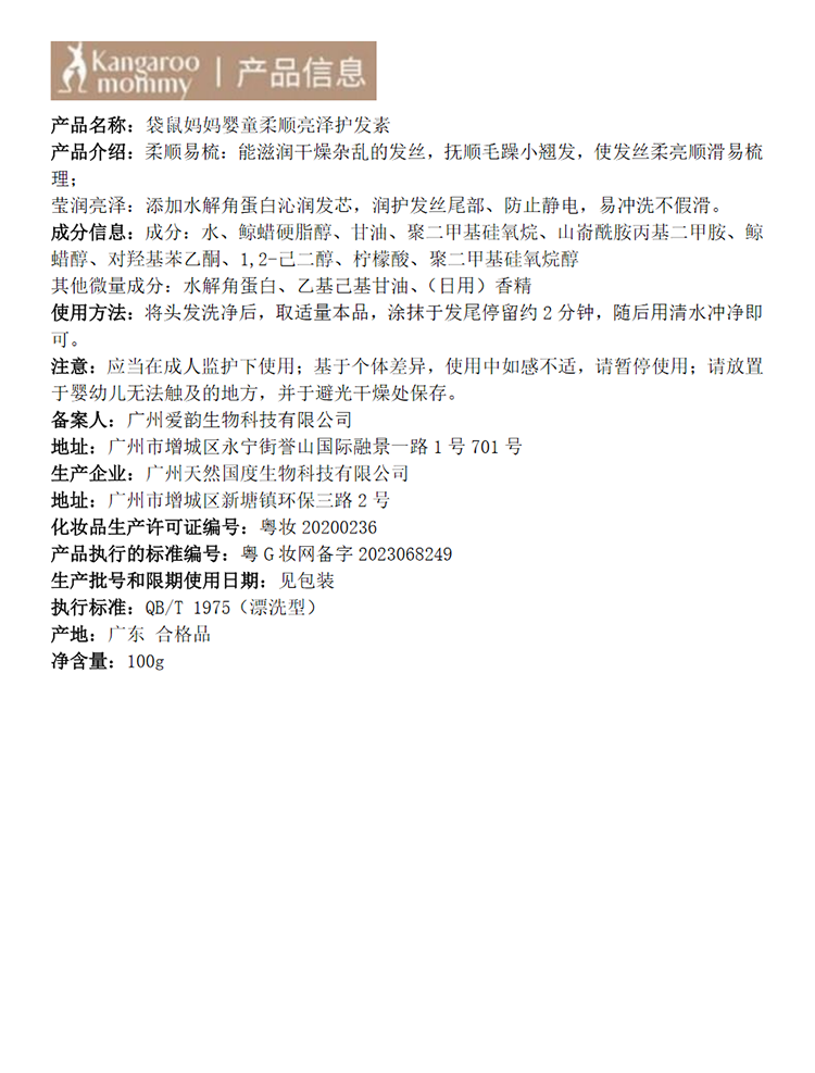【婴童护发素】0岁以上可用 2分钟改善幼发毛躁 秀发顺滑柔亮 婴童柔顺亮泽护发素100g