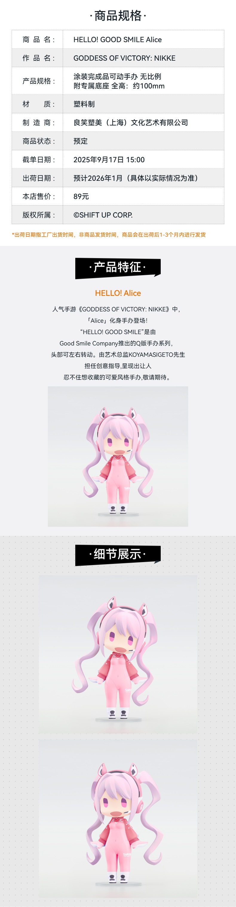 【GSC现货】HELLO! GOOD SMILE Alice 手办模玩 GODDESS OF VICTORY: NIKKE