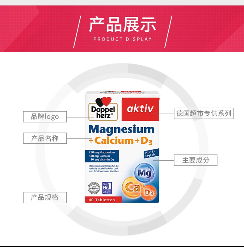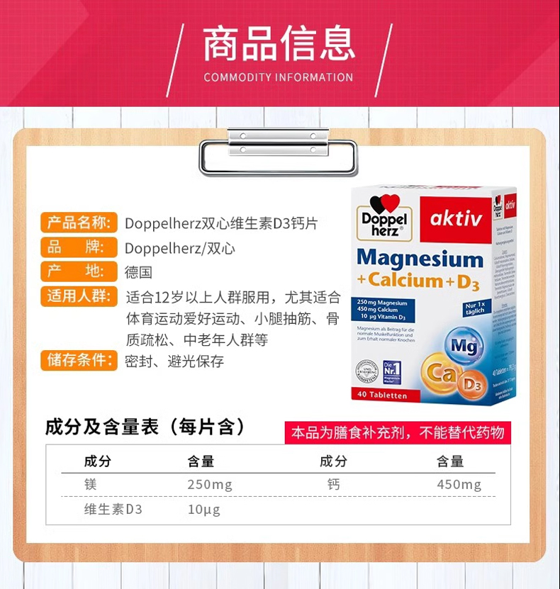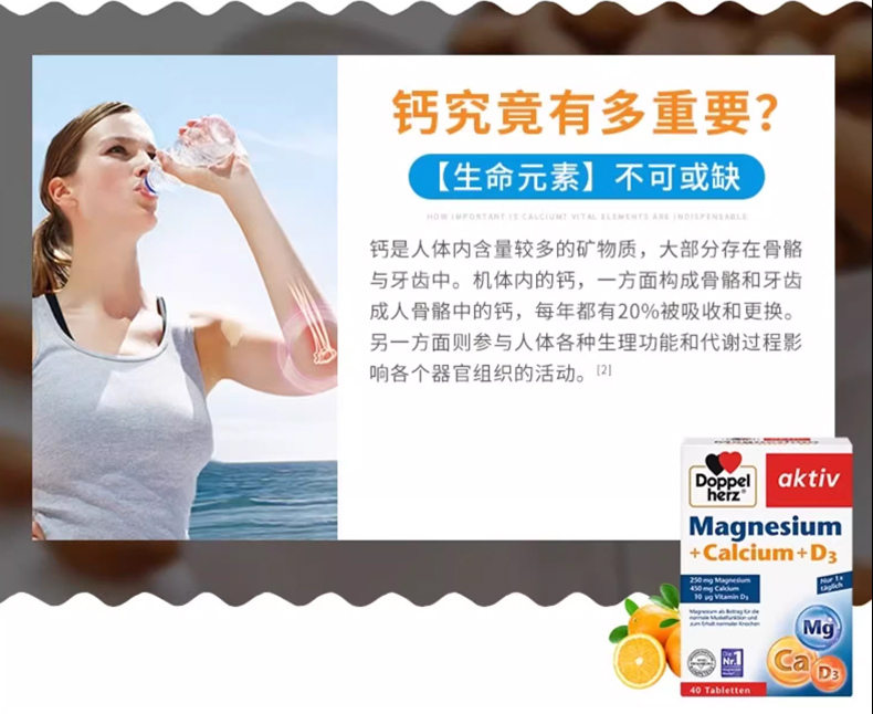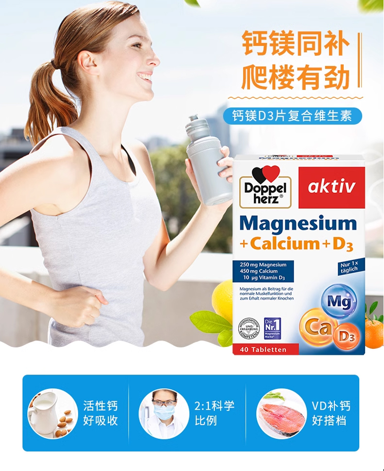 【德国双心】原装进口钙镁D3片复合维生素中老年补钙补充剂钙镁片女性