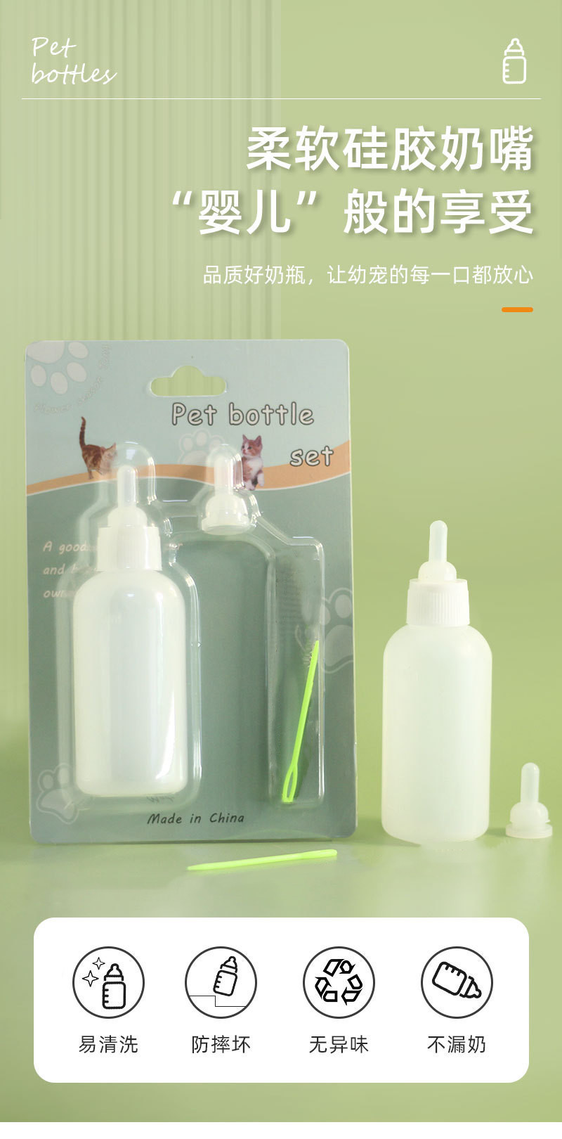 宠物奶瓶套装60ml犬猫通用 幼猫幼犬适用 可拆洗